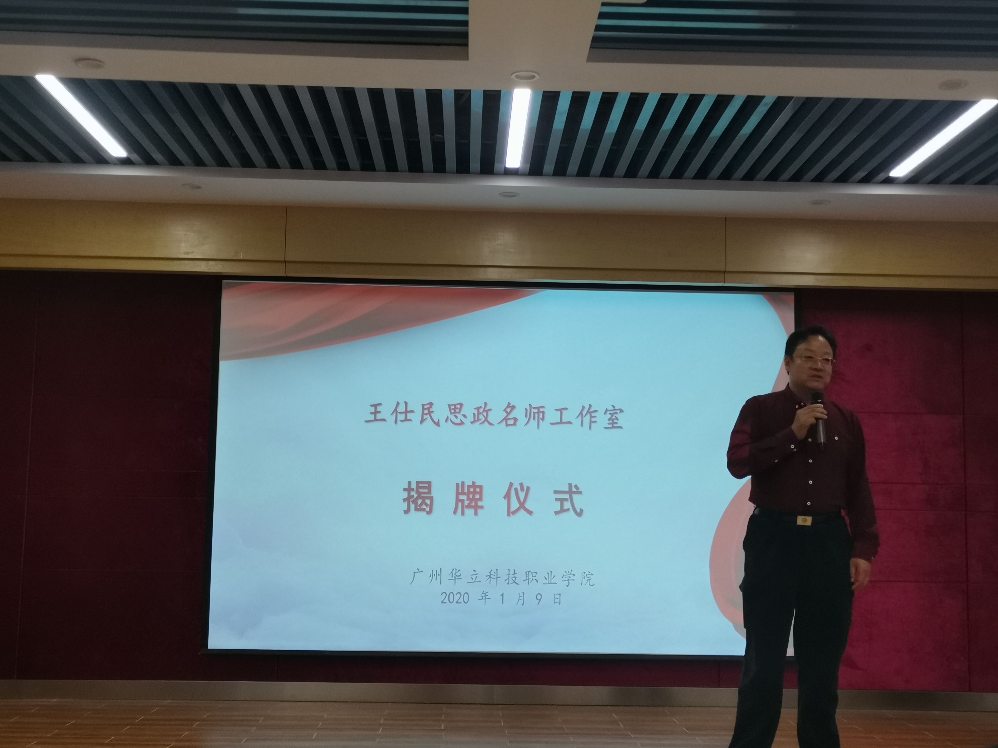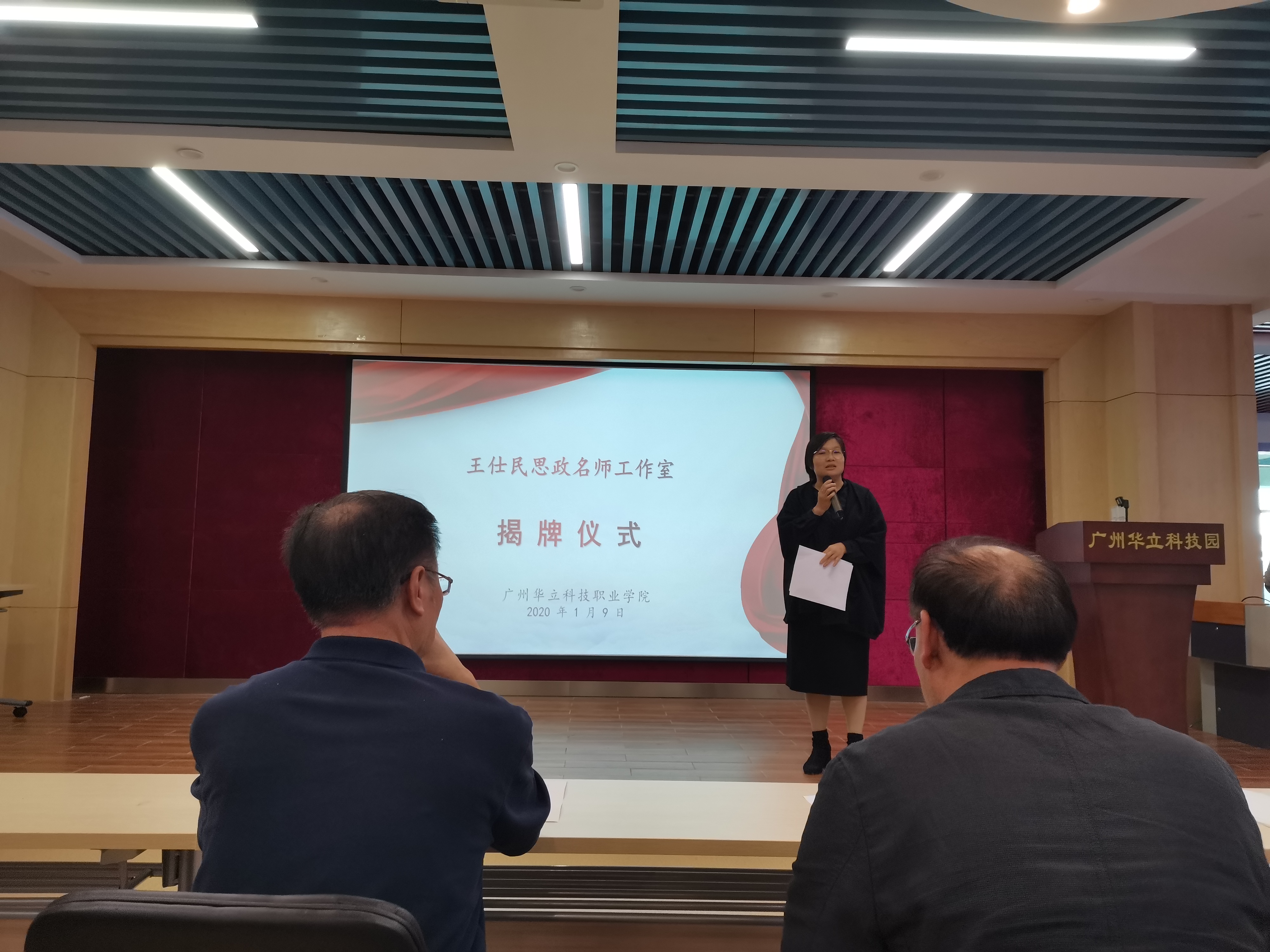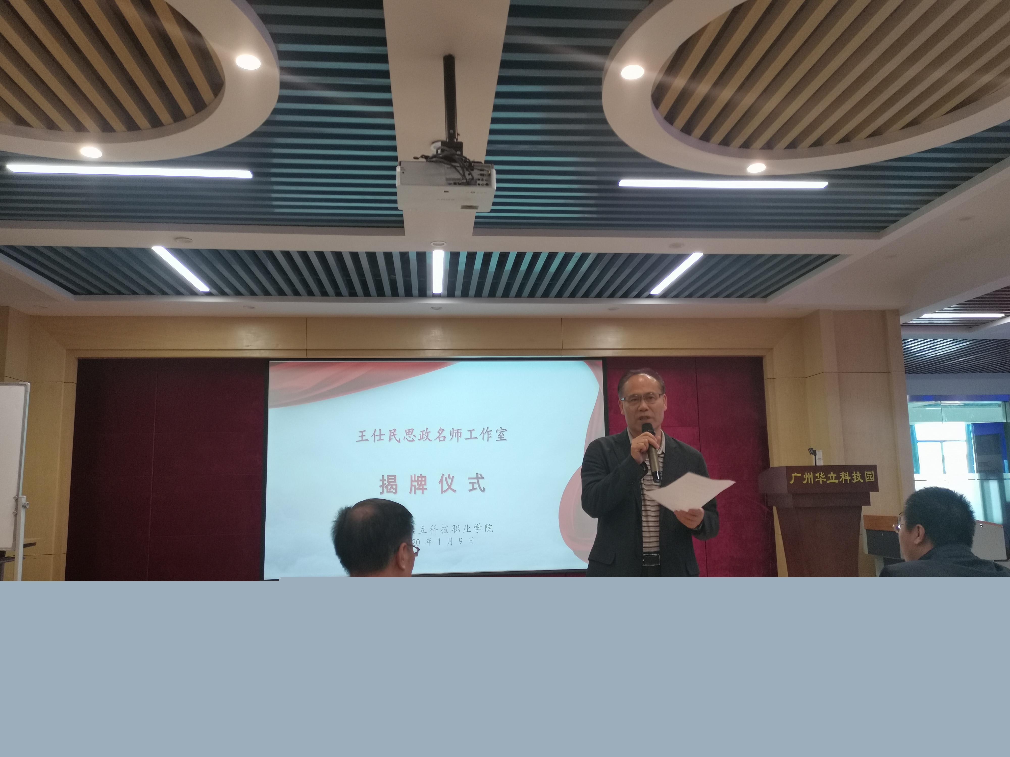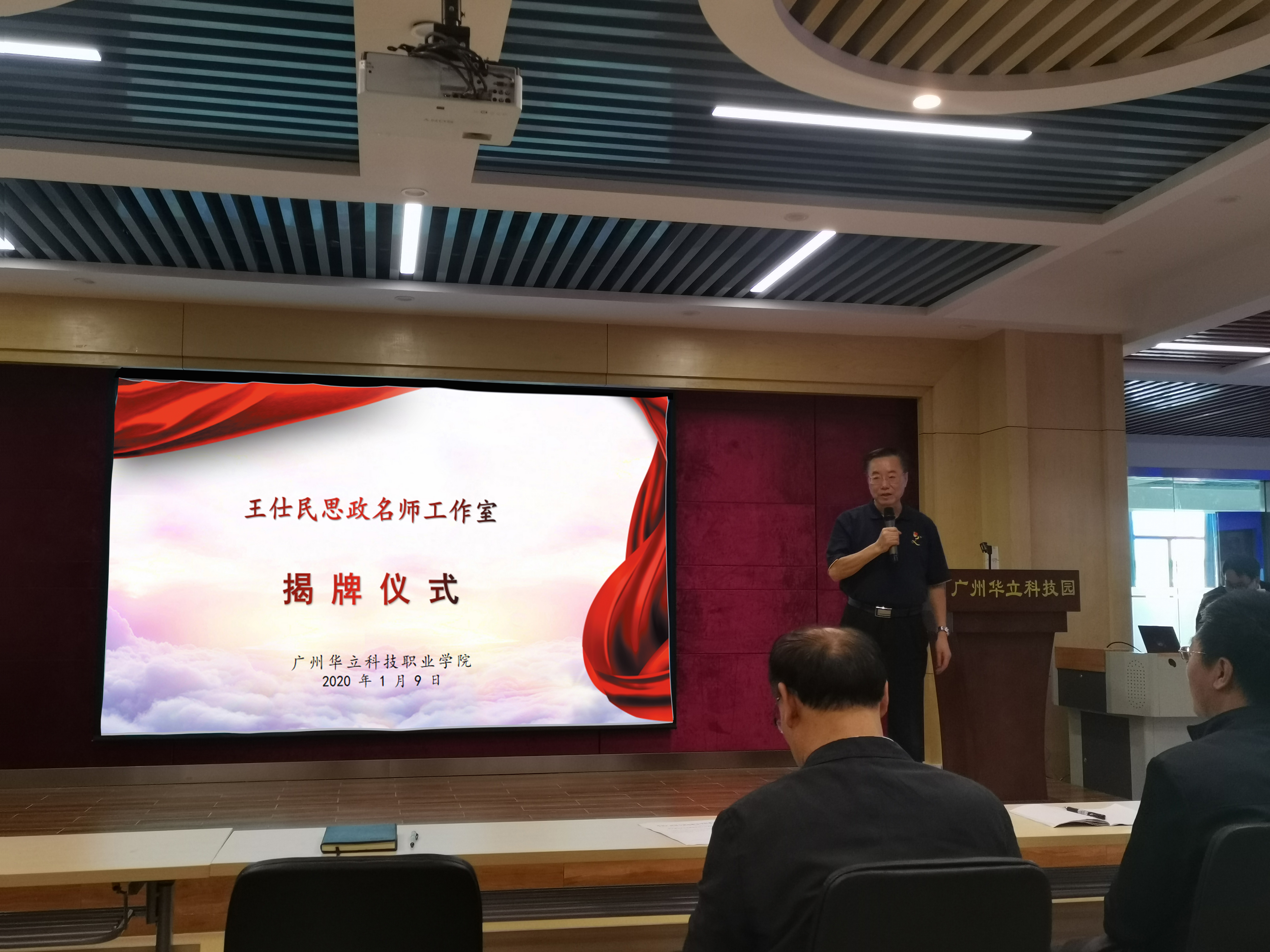 1月9日下午,廣州華立科技職業(yè)學(xué)院王仕民思政名師工作室授牌儀式在科技樓舉行。學(xué)校高度重視此次活動(dòng),校黨委書(shū)記林偉健、黨委副書(shū)記高堯來(lái)以及馬龍海、馬俊、易健民等學(xué)校領(lǐng)導(dǎo)出席揭牌儀式。活動(dòng)由校黨委委員、副校長(zhǎng)馬俊主持。學(xué)校中層干部、黨務(wù)干部、全體思政教師、名師工作室領(lǐng)銜人及工作室成員參加此次活動(dòng)。