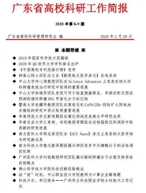 近日,由廣東省高??蒲泄芾硌芯繒?huì)代表省教育廳發(fā)布的《廣東省高校科研工作簡報(bào)》(2019年第8-9期)中重點(diǎn)報(bào)道了我?!翱萍寂d農(nóng),鄉(xiāng)村振興”工作進(jìn)展情況。