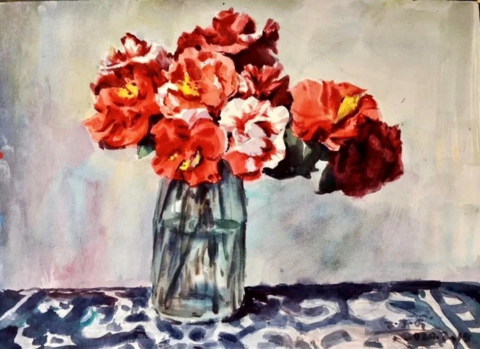干凈利落的筆觸,大塊面的顏色,表現(xiàn)充滿生命力的鮮花,