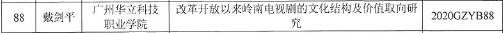 4月28日,從廣州市社科規(guī)劃領(lǐng)導(dǎo)小組辦公室獲悉,我校戴劍平教授申報(bào)的《改革開放以來嶺南電視劇的文化結(jié)構(gòu)及價(jià)值取向研究》(2020GZYB88)獲廣州市哲學(xué)社會(huì)科學(xué)發(fā)展“十三五”規(guī)劃2020年度一般課題立項(xiàng),立項(xiàng)數(shù)我校與廣州城建職業(yè)學(xué)院、廣州南洋理工職業(yè)學(xué)院并列全省同類院校第一名。同時(shí),我校葉春桃老師申報(bào)的課題《新時(shí)代職業(yè)院校思政課教師利用廣州紅色文化資源提升實(shí)踐教學(xué)能力路徑研究》(2020GZGJ301)和陶必芝老師申報(bào)的課題《廣州高職學(xué)生藝術(shù)素養(yǎng)養(yǎng)成有效路徑研究》(2020GZGJ302)獲廣州市哲學(xué)社會(huì)科學(xué)發(fā)展"十三五"規(guī)劃2020年度共建課題立項(xiàng),立項(xiàng)數(shù)我校與廣州城建職業(yè)學(xué)院并列全省同類院校第二名。