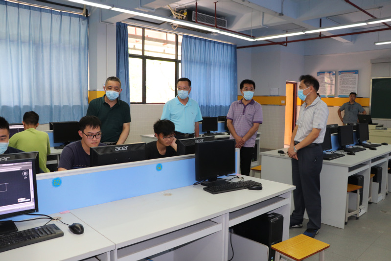 學(xué)校領(lǐng)導(dǎo)在實(shí)訓(xùn)室看望上課的同學(xué)