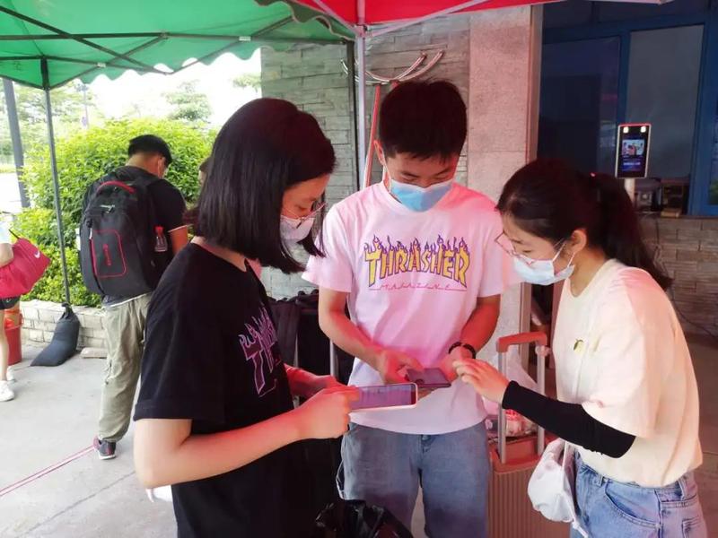 各二級學(xué)院學(xué)生黨員勇于奉獻、敢為人先,積極參加迎接18級學(xué)生返校志愿工作,充分體現(xiàn)了共產(chǎn)黨員的擔當精神。校門口前實施“一測二核三查四通過”,測量體溫、核驗身份、查驗健康碼、符合條件的學(xué)生方可通過,整個流程分工明確,順暢有序。同學(xué)們自覺相隔安全距離,井然有序的排隊等待檢查.在工作人員的帶領(lǐng)下,返校工作有條不紊、高效順暢。