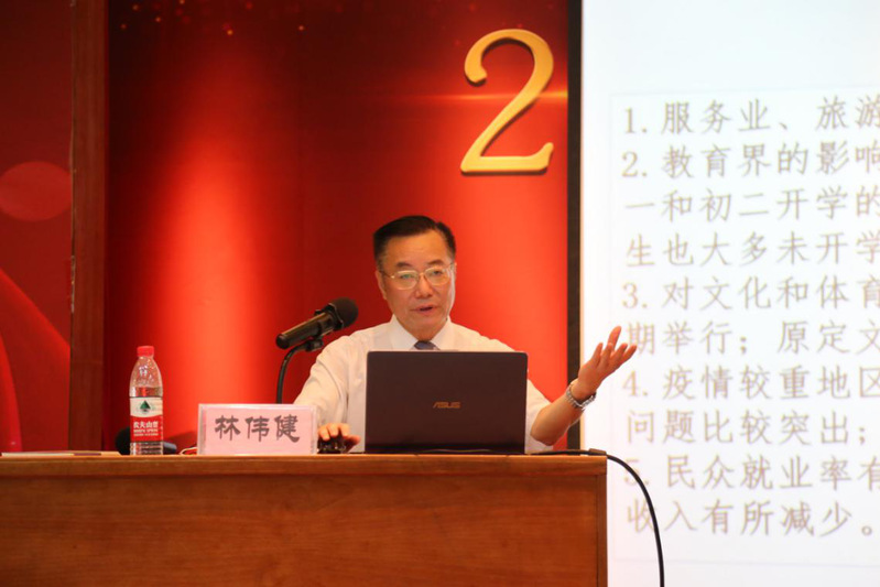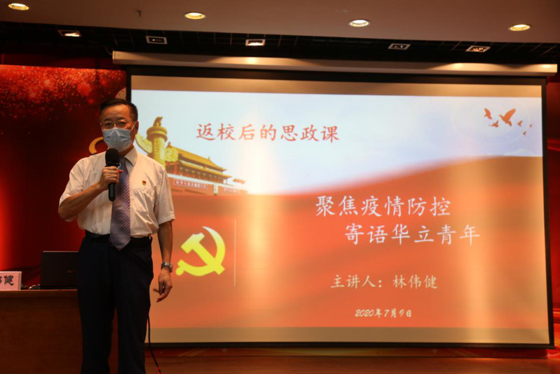 7月9日上午,學校黨委書記林偉健教授在東區(qū)一號報告廳,以“聚焦疫情防控 寄語華立青年”為題,并輔以直播的方式為返回校園和居家的學子上“返校后的思政課”。學院黨務干部、黨辦和各二級學院黨建組織員、學生代表200多人和所有觀看直播同學一同聽取了生動的思政課,使思想認識得到升華。