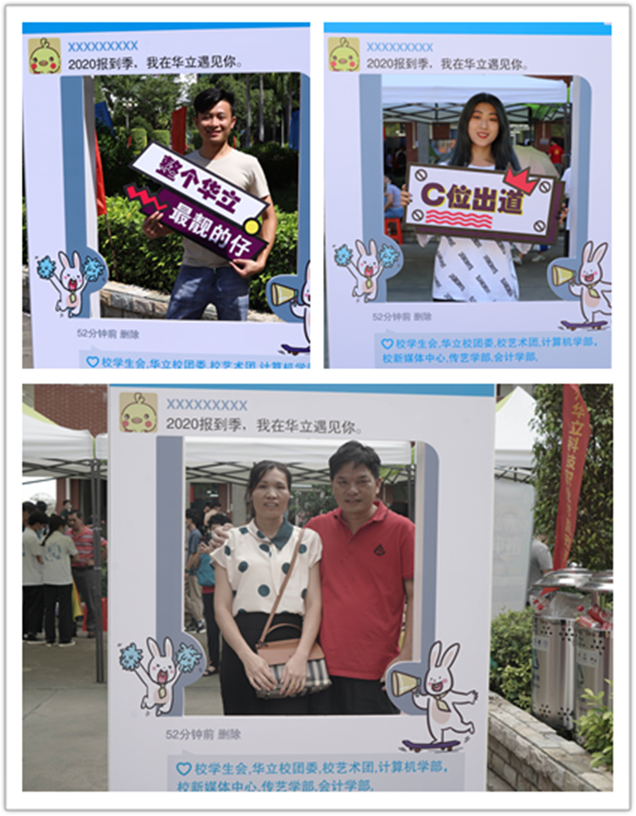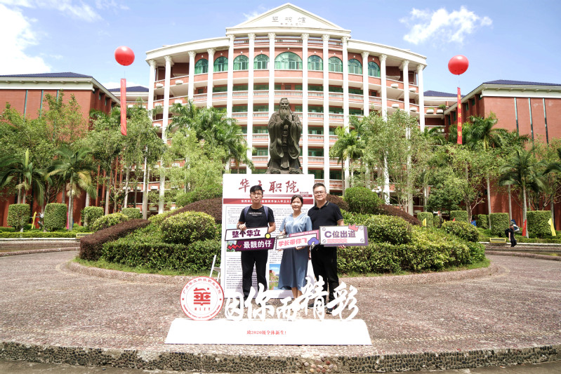 絡(luò)繹不絕的新生和家長(zhǎng)紛紛在“華立職院“的大噴前駐足,與相框KT板合照,記錄下這一特殊的時(shí)刻。同學(xué)們臉上洋溢的笑容,是對(duì)大學(xué)三年生活美好的向往。家長(zhǎng)臉上的笑容,則充滿了對(duì)孩子美好未來的憧憬。
