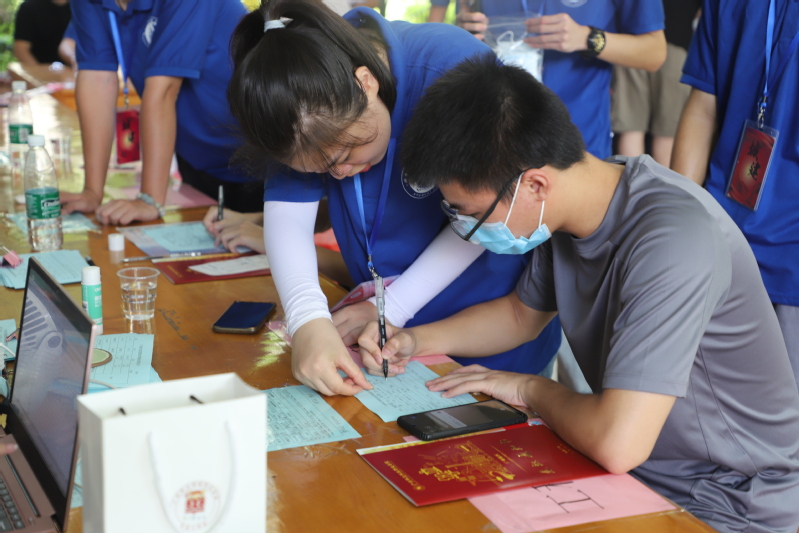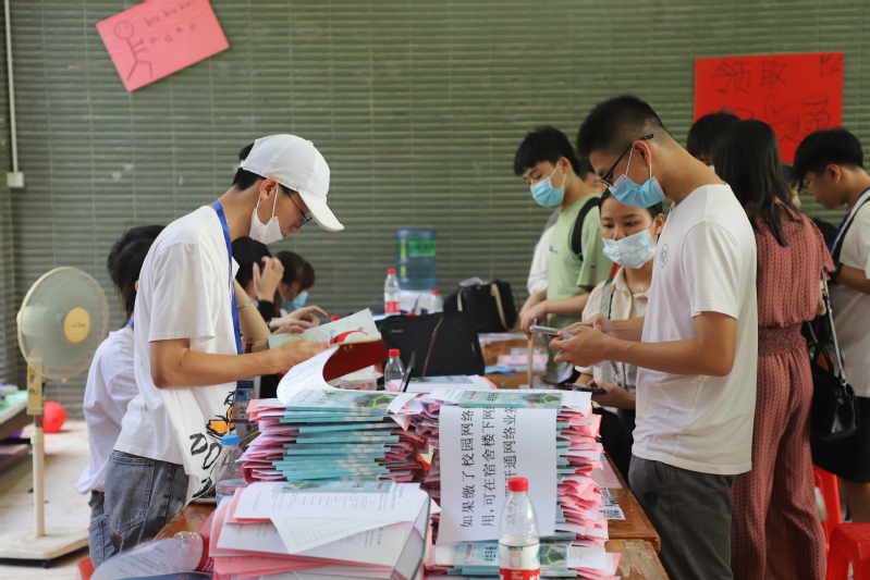 迎新現(xiàn)場(chǎng),穿著“紅”“藍(lán)”“白”等顏色院服的學(xué)長(zhǎng)學(xué)姐最為忙碌,這些志愿者為新生及家長(zhǎng)提供最全面的引導(dǎo)服務(wù)。幫新生拎行李,引導(dǎo)新生根據(jù)報(bào)到流程完成入學(xué)手續(xù),讓新生一進(jìn)入校門便感受到來自師兄師姐的關(guān)懷和溫暖。熱情的笑臉,關(guān)切的話語,迎新志愿者成為新生入學(xué)的第一個(gè)“引路人”。在各二級(jí)學(xué)院和每棟宿舍樓下,都有志愿者發(fā)放校園卡,積極回答新生的問題,讓新生對(duì)學(xué)校和專業(yè)學(xué)習(xí)有了一定了解。