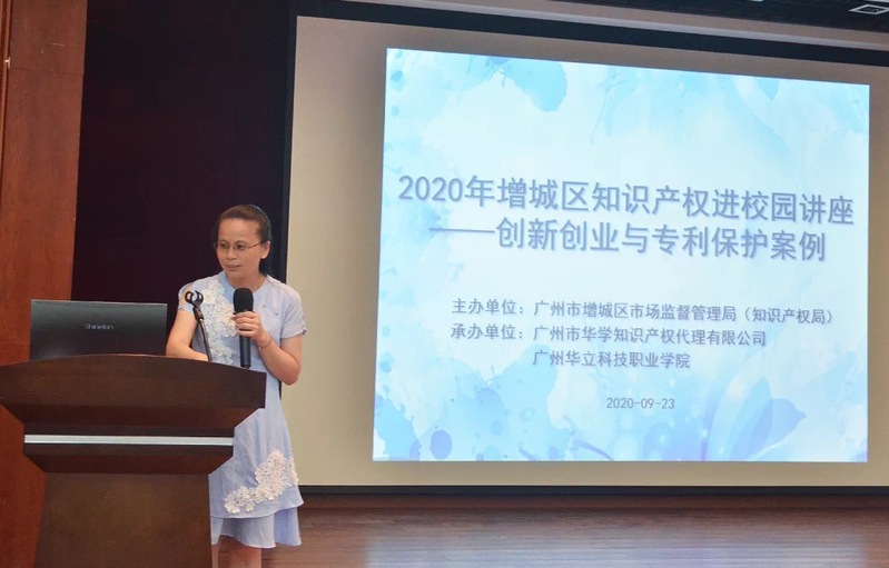 此次活動是我校廣州市知識產(chǎn)權(quán)試點學(xué)校項目推出的2020年增城區(qū)知識產(chǎn)權(quán)進(jìn)校園系列活動。廣州華學(xué)知識產(chǎn)權(quán)代理有限公司副總經(jīng)理張澤鋒,事業(yè)部副總經(jīng)理、專利代理師蘇運貞,科研處副處長李衛(wèi)國教授,團(tuán)委副書記、創(chuàng)業(yè)辦副主任楊濤,科研處副科長任志勇,以及大學(xué)生創(chuàng)業(yè)聯(lián)合會成員以及對雙創(chuàng)感興趣的師生參加了講座。