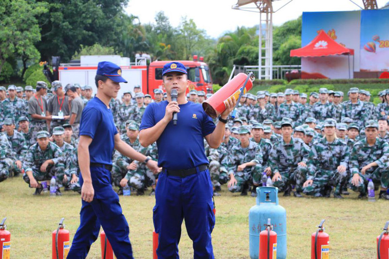 云浮消防特勤中隊領隊向師生們詳細普及了有關火災現場的應急處置辦法、人員疏散注意事項以及滅火器的使用方法等知識,并由消防官兵進行了現場滅火要領示范。