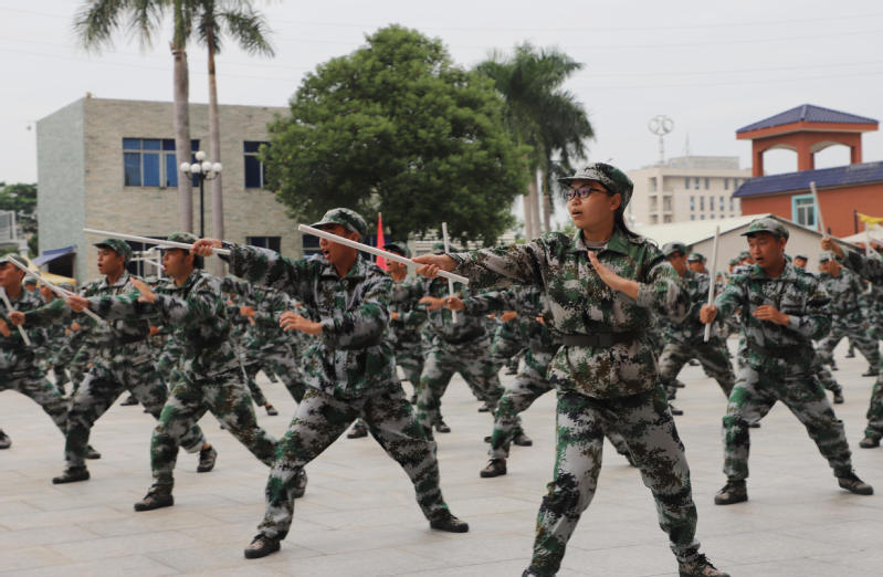 伴隨著鏗鏘有力的音樂,3100多名2020級新生開始分列式表演。同學(xué)們喊著響亮的口號,精神抖擻、昂首闊步依次走過主席臺。在軍訓(xùn)課目匯報表演環(huán)節(jié),新生們進(jìn)行了匕首操、軍體拳、短棍操、拳術(shù)等科目的演示,神采飛揚(yáng)、英姿颯爽。壓軸表演詩朗誦《中國說》表達(dá)大家對偉大祖國的熱愛與祝福,將匯演氣氛推向高潮。同學(xué)們飽滿的精神狀態(tài),充分展示了華立職院學(xué)子良好的軍政素質(zhì)和嶄新的精神風(fēng)貌,展現(xiàn)了本次學(xué)生軍訓(xùn)的豐碩成果。
