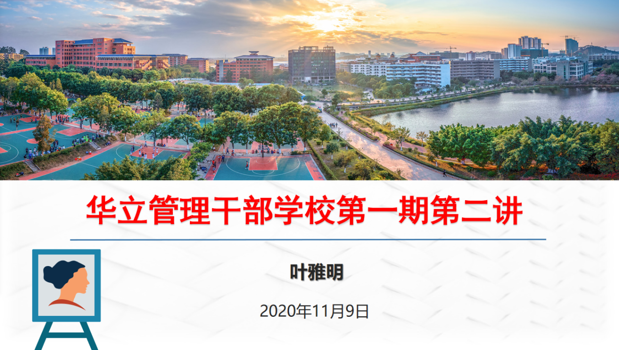 11月11日晚, 華立管理干部學(xué)校系列培訓(xùn)會議在廣州校區(qū)行政樓305舉行??偨?jīng)理葉雅明正式開講第一期第二講。學(xué)校領(lǐng)導(dǎo)、干部學(xué)校第一期培訓(xùn)學(xué)員參加培訓(xùn)。