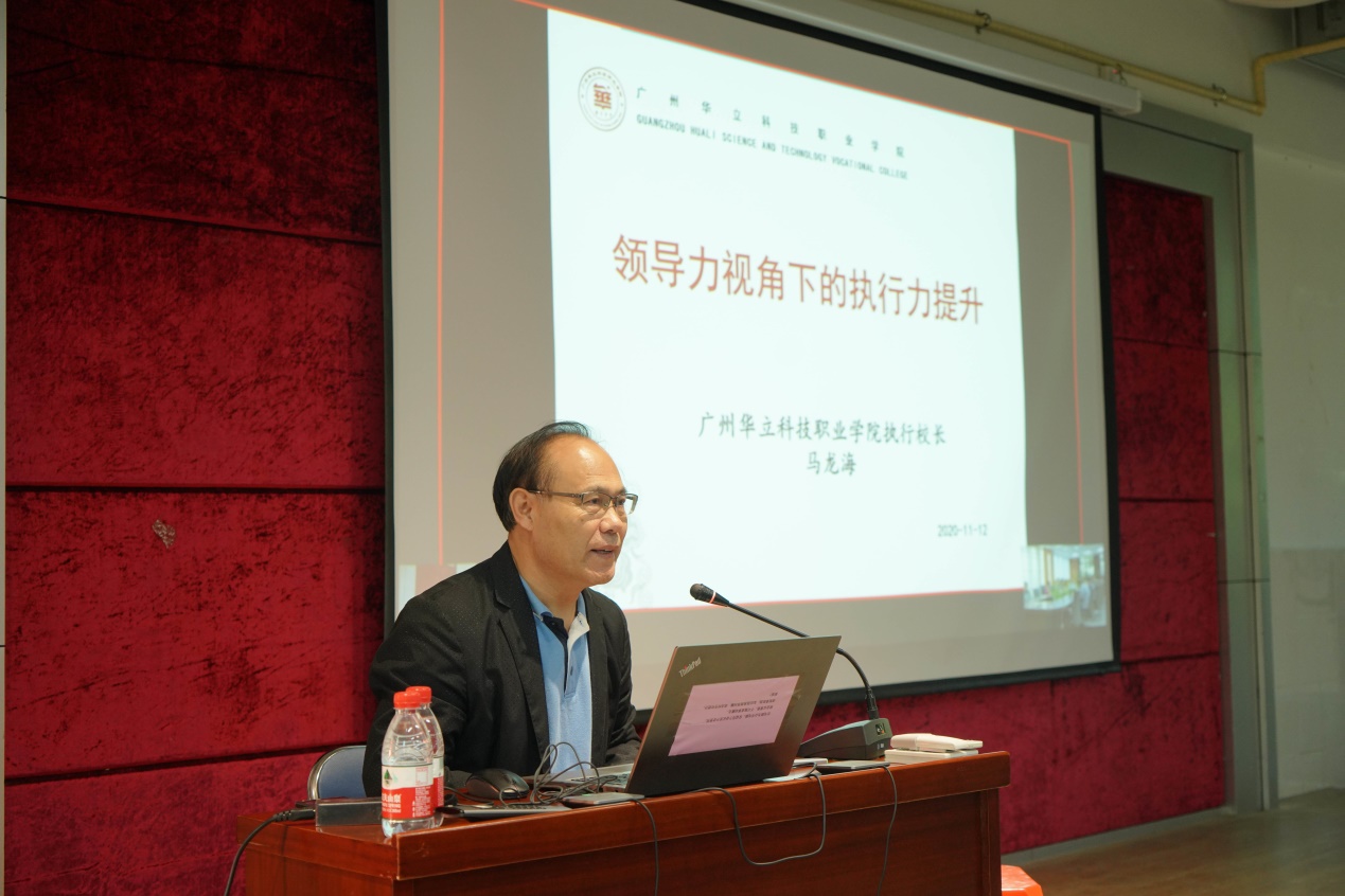 11月12日下午,學(xué)校在圖書館104會議室舉行了干部培訓(xùn)學(xué)校專題講座第三講-領(lǐng)導(dǎo)力視角下的執(zhí)行力提升(之一),由馬龍海執(zhí)行校長主講,增城校區(qū)和云浮校區(qū)部門負(fù)責(zé)人和第一期干部培訓(xùn)學(xué)員參與了培訓(xùn)學(xué)習(xí)。