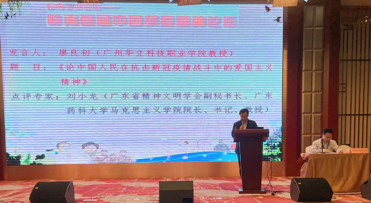 論壇上,廖良初教授應(yīng)邀進(jìn)行了學(xué)術(shù)交流,就中國(guó)人民在這次抗擊新冠疫情戰(zhàn)斗中所表現(xiàn)出來(lái)的愛(ài)國(guó)主義精神進(jìn)行了全面探討,提出:“熱愛(ài)黨,對(duì)中國(guó)共產(chǎn)黨的衷心擁護(hù)之情;熱愛(ài)社會(huì)主義,對(duì)中國(guó)特色社會(huì)主義制度的無(wú)比自信和高度認(rèn)同之情;熱愛(ài)人民,堅(jiān)持以人民為中心和對(duì)疫區(qū)同胞的傾力馳援之情;熱愛(ài)英雄,對(duì)抗疫勇士無(wú)限崇敬和對(duì)抗疫烈士親屬的關(guān)愛(ài)之情;熱愛(ài)人類(lèi),對(duì)生命敬畏和對(duì)構(gòu)建人類(lèi)命運(yùn)共同體的不懈奮斗之情”是中國(guó)人民在這次抗疫戰(zhàn)斗中愛(ài)國(guó)主義的集中表現(xiàn)。廖良初教授認(rèn)為:在這次全國(guó)抗擊疫情阻擊戰(zhàn)中,老百姓從來(lái)沒(méi)有像今天這樣對(duì)中國(guó)共產(chǎn)黨產(chǎn)生如此高的熱情和對(duì)黨的擁護(hù),也從來(lái)沒(méi)有對(duì)中國(guó)特色社會(huì)主義制度優(yōu)越性產(chǎn)生如此強(qiáng)大的認(rèn)同和肯定。