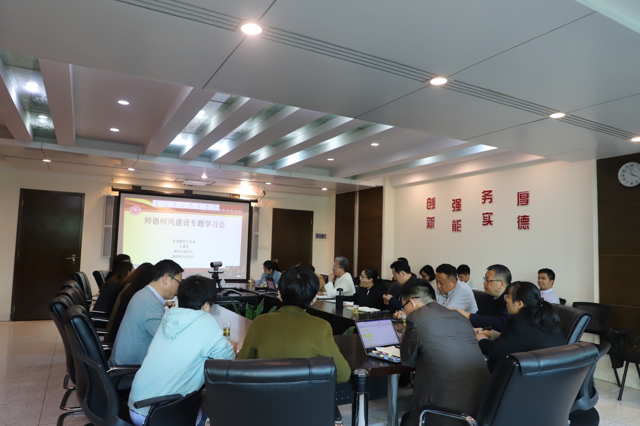 學(xué)懂弄通做實,夯實師德師風(fēng)根基。會議重溫了《高校教師職業(yè)道德規(guī)范》、《關(guān)于建立健全高校師德建設(shè)長效機(jī)制的意見》、《關(guān)于加強(qiáng)和改進(jìn)新時代師德師風(fēng)建設(shè)的意見》《教育部關(guān)于高校教師師德失范行為處理的指導(dǎo)意見》和《新時代高校教師職業(yè)行為十項準(zhǔn)則》等文件精神。教師工作部部長帶領(lǐng)參會人員逐條研學(xué)并結(jié)合學(xué)校師德師風(fēng)現(xiàn)狀進(jìn)行解讀。會議強(qiáng)調(diào)學(xué)校高度重視教師思想政治工作,把師德師風(fēng)建設(shè)作為學(xué)校發(fā)展的一項全局性、基礎(chǔ)性、戰(zhàn)略性的工程來抓,學(xué)校制定了關(guān)于建立健全教師師德建設(shè)長效機(jī)制的實施辦法,引導(dǎo)全體教師以德立身、以德立學(xué)、以德施教,爭做“有理想信念、有道德情操、有扎實學(xué)識、有仁愛之心”的“四有”好老師,充分發(fā)揮教師在人才培養(yǎng)過程中的主導(dǎo)作用,真正把全員、全程、全方位育人落到實處。
