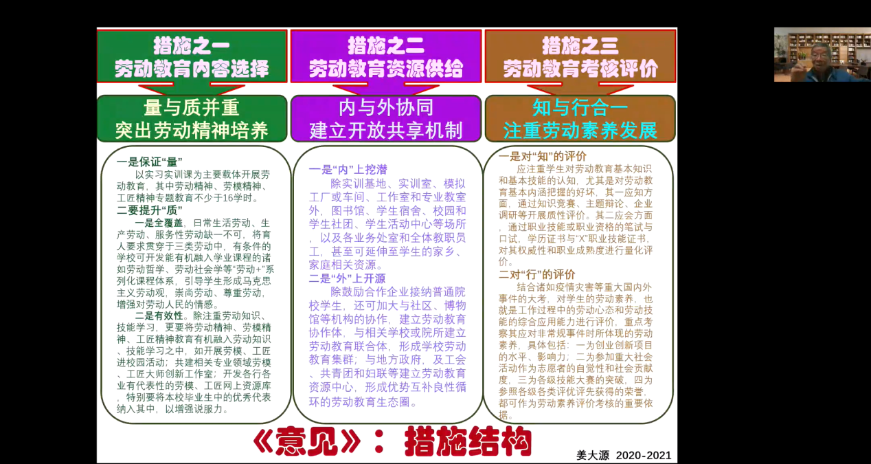教育部職業(yè)技術(shù)教育中心研究所研究員姜大源,教育部職業(yè)院校信息化教學指導委員會教學研究專門委員會委員、北京理工大學遠程教育學院教育技術(shù)研究所負責人董宏建副教授,人力資源與社會保障部職業(yè)技能鑒定中心副編審許遠,廣東輕工職業(yè)技術(shù)學院副校長廖俊杰教授,廣東省全省學校美育教育指導委員會常務委員、廣東輕工職業(yè)技術(shù)學院藝術(shù)設計學院院長桂元龍教授,湖南師范大學體育學院院長、博士生導師金育強教授,廣東輕工職業(yè)技術(shù)學院大學生心理健康教育與咨詢中心主任、國家二級心理咨詢師王玉潔等專家學者受邀進行專題講座。系列講座分別對勞動教育、信息技術(shù)應用基礎、職業(yè)發(fā)展與就業(yè)指導、創(chuàng)新創(chuàng)業(yè)教育、美育、體育與健康、心理健康教育7門課程的課程建設與教學設計等方面提出了指引,提供了眾多建設性的可操作性的建議和意見,希望通過教師、教材和教法改革,為錘煉“金課”,為教師個人發(fā)展、課堂教學改革與人才培養(yǎng)質(zhì)量提升進一步提供助力。