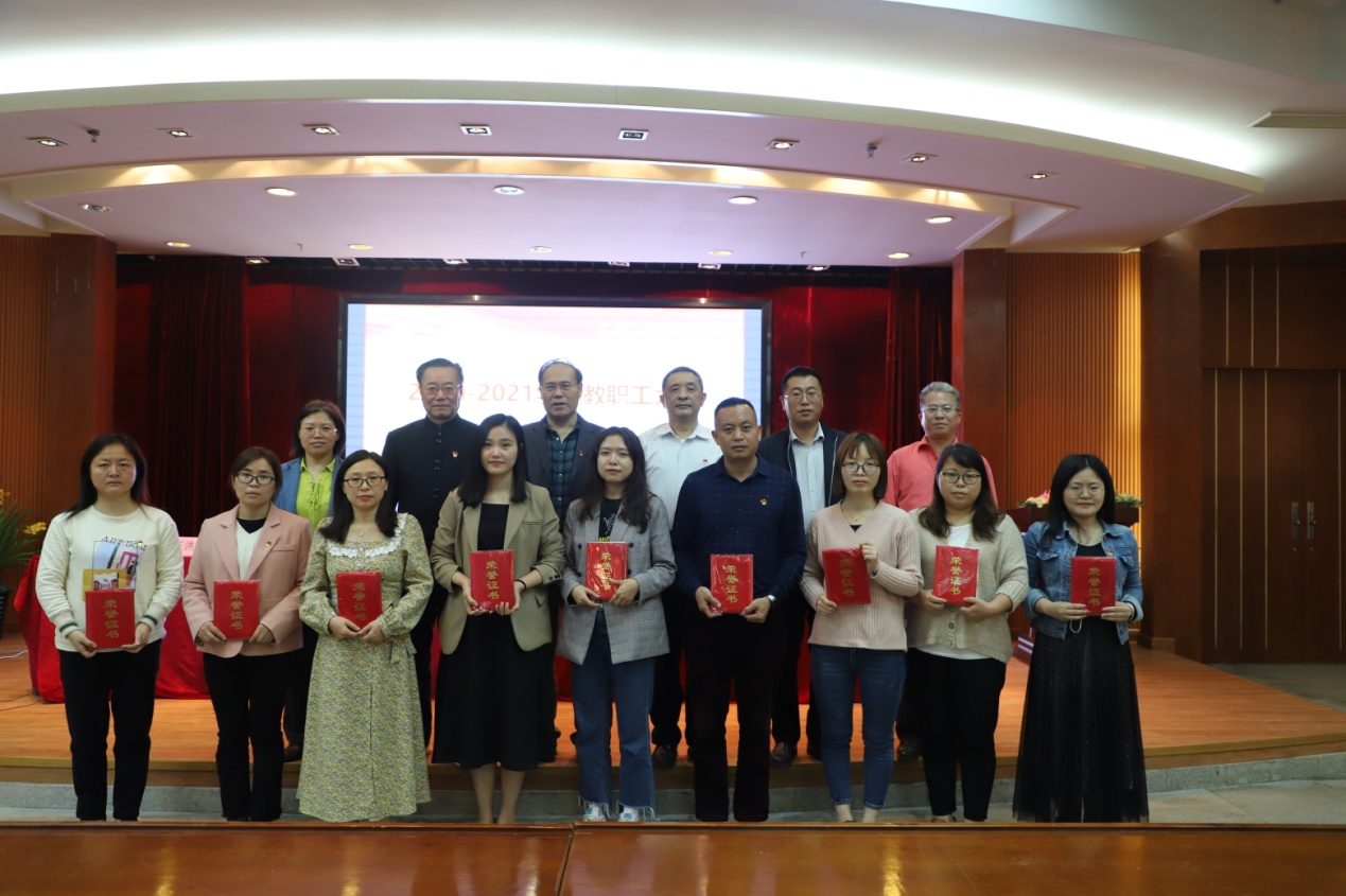最后,頒發(fā)2020-2021學年教學能力大賽獎項,校領導和獲獎老師合影留念。