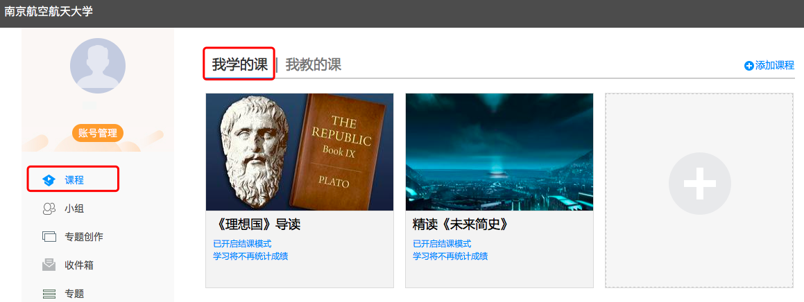 (2)在學(xué)習(xí)空間左側(cè),點擊“課程”-> “我學(xué)的課”,選擇課程進(jìn)行學(xué)習(xí)。