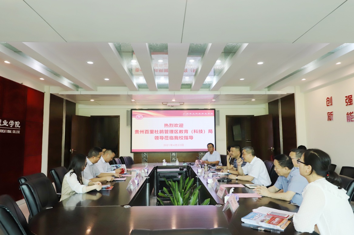 2021年4月22日,廣州市增城區(qū)與畢節(jié)市百里杜鵑管理區(qū)教育對口幫扶交流座談會在學校行政樓305舉行。增城區(qū)黨校校長夏文生、百里杜鵑管理區(qū)教育局副局長李文平、學校校長劉莊及雙方相關工作人員參加了交流會。校長劉莊主持交流座談會并致歡迎辭。