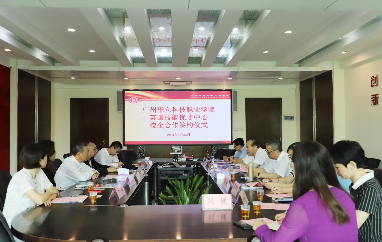 2021年4月23日下午,廣州華立科技職業(yè)學(xué)院與英國(guó)技能優(yōu)才中心校企合作簽約儀式在廣州校區(qū)行政樓三樓會(huì)議室舉行。英國(guó)技能優(yōu)才中心主任馬良、中旅聯(lián)控股公司執(zhí)行總裁郭椿濤、培生大中華區(qū)職場(chǎng)優(yōu)才產(chǎn)品總監(jiān)戴麗敏、培生大中華區(qū)高級(jí)公共事務(wù)專員安妮、大高(山東)產(chǎn)教融合科技發(fā)展集團(tuán)總裁助理張魯,我校校長(zhǎng)劉莊、執(zhí)行校長(zhǎng)馬龍海、招生辦主任蘇越、校企合作處負(fù)責(zé)人鐘文浩以及相關(guān)人員出席了簽約儀式。簽約儀式由我校執(zhí)行校長(zhǎng)馬龍海主持。