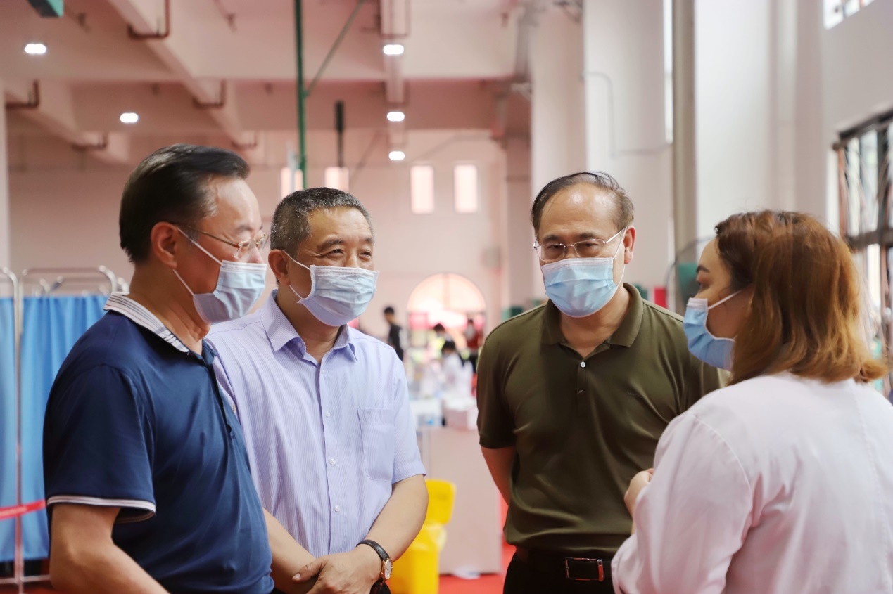 接種工作啟動(dòng)后,校領(lǐng)導(dǎo)來(lái)到學(xué)校接種點(diǎn),看望、鼓勵(lì)在場(chǎng)師生,關(guān)心、慰問(wèn)一線(xiàn)工作人員和學(xué)生志愿者。