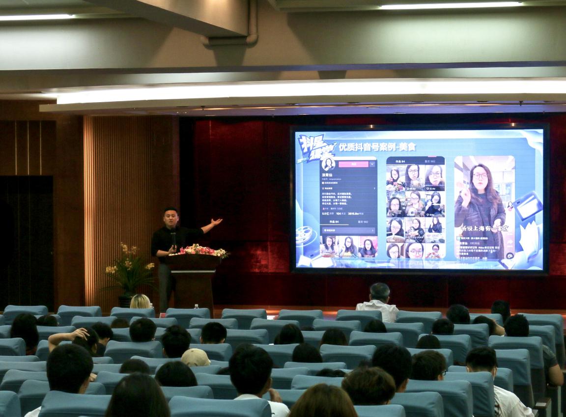 4月27日下午,“抖音課堂”第一場(chǎng)開講。職院辦公室主任朱少先、團(tuán)委書記朱君,藝術(shù)與傳媒學(xué)院300余位師生齊聚華立職院一號(hào)報(bào)告廳,聆聽巨量引擎廣佛本地直營(yíng)中心培訓(xùn)部高級(jí)經(jīng)理張?jiān)饺?、巨量引擎官方講師以及抖音優(yōu)質(zhì)短視頻創(chuàng)作者代表講座,了解抖音平臺(tái)基礎(chǔ)知識(shí),以及干貨滿滿的“0-1”抖音內(nèi)容打造指南。