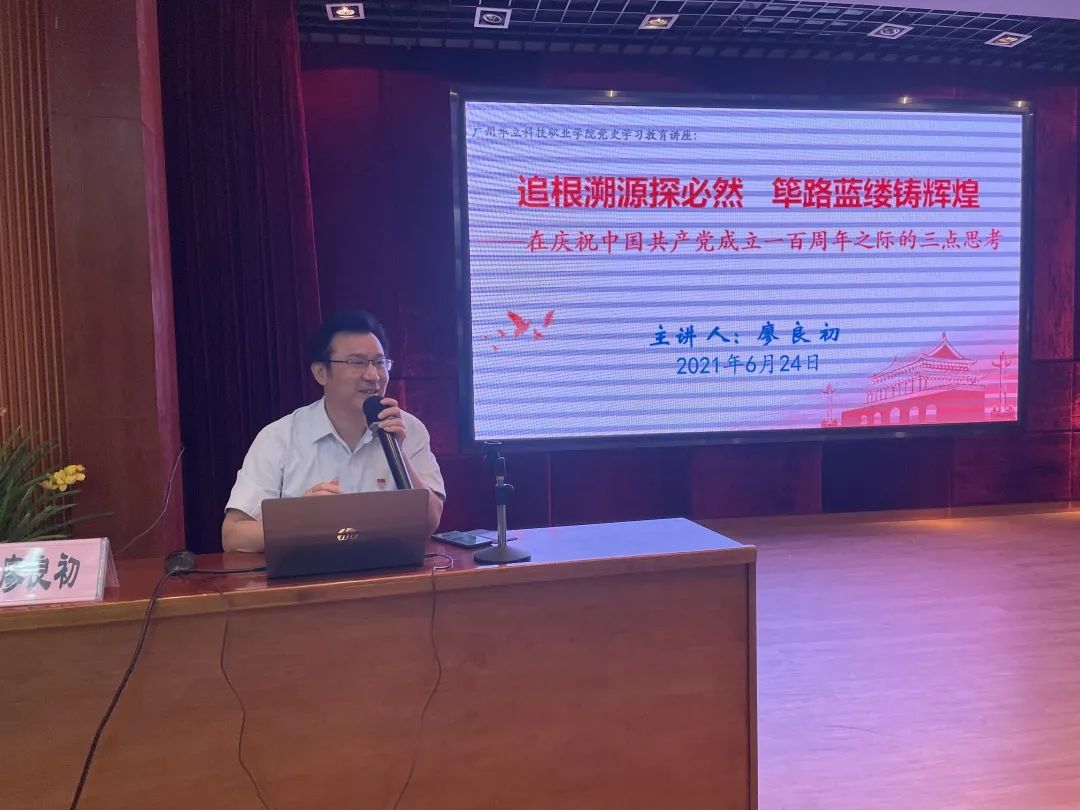 在舉國上下同慶中國共產(chǎn)黨成立100周年之際,為扎實推進(jìn)黨史學(xué)習(xí)教育走深走實,6月24日下午,廣州華立科技職業(yè)學(xué)院黨委在東區(qū)圖書館1號報告廳舉辦黨史學(xué)習(xí)教育專題報告會,邀請黨史專家、我校馬克思主義學(xué)院常務(wù)副院長廖良初教授作專題輔導(dǎo)報告。學(xué)校黨委委員、校領(lǐng)導(dǎo)、中層干部、黨務(wù)干部、思政課教師和七一表彰對象參加。會議由學(xué)校黨委書記林偉健教授主持。云浮校區(qū)以視頻連線方式一同參加。