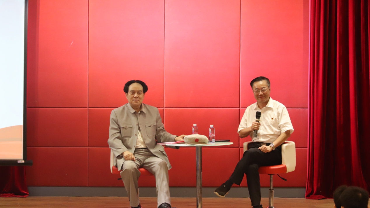 本次黨委書記思政第一課,形式獨特,別開生面。黨委書記林偉健教授與“毛主席”同登臺,以對話方式講課:解讀《為人民服務》,理解共產(chǎn)黨員的宗旨意識。開始講課時,琴石老師模仿毛澤東主席的湖南口音,先朗誦了毛主席的詩詞《七律.長征》《清平樂.六盤山》,然后表演了“人民萬歲”的情景片段,頓時歡聲雷動,讓師生們情不自禁產(chǎn)生了紅色回憶。接著,林偉健書記簡要介紹本次思政課的教學內(nèi)容、目的要求,并向大家強調(diào)了開展黨史學習教育、慶祝建黨一百周年的重大意義。隨后,琴石老師朗讀了毛主席的著作《為人民服務》;林書記介紹了《為人民服務》這篇著作產(chǎn)生的背景和張思德同志的生平及其在平凡崗位上為人民兢兢業(yè)業(yè)做貢獻的感人事跡。林偉健書記和琴石老師共同引經(jīng)據(jù)典,配合默契,相互補充,重點從為人民服務的宗旨意識、革命的生死觀和人生的價值、為了人民利益要堅持好的改正錯的、要善于開展批評與自我批評、要善于搞五湖四海團結(jié)一致共同奮斗等方面,為師生們生動詮釋了毛主席的《為人民服務》這一經(jīng)典著作。林書記向師生們強調(diào)指岀:千秋偉業(yè),百年風華,我們一定要牢記中國共產(chǎn)黨曲折艱辛的輝煌歷史,要明確并樹立共產(chǎn)黨人的宗旨意識;當代大學生要把人民利益放在首位,要通過各種方式為人民服務,學好知識,報效社會,創(chuàng)造人生價值。