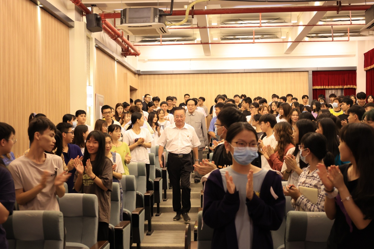 精辟的經(jīng)典解讀,獨特的授課方式,引起了現(xiàn)場師生們的共鳴,尤其是“毛主席”講毛主席著作,更是讓大家印象深刻。一個多小時的授課,師生們認真聽講,全情投入,積極互動,興致勃勃。在現(xiàn)場的三位老黨員——林偉健書記、黃樂覽副校長和琴石老師,黨齡都超過四十五年。他們用自己的親身經(jīng)歷和感悟,對師生們語重心長地提出殷切期望,更是讓大家倍受感動。課堂氣氛熱烈,師生們反響更熱烈?,F(xiàn)場師生紛紛表示:有幸聆聽這樣形式新穎的思政課,收獲大,印象深,令人難忘。
