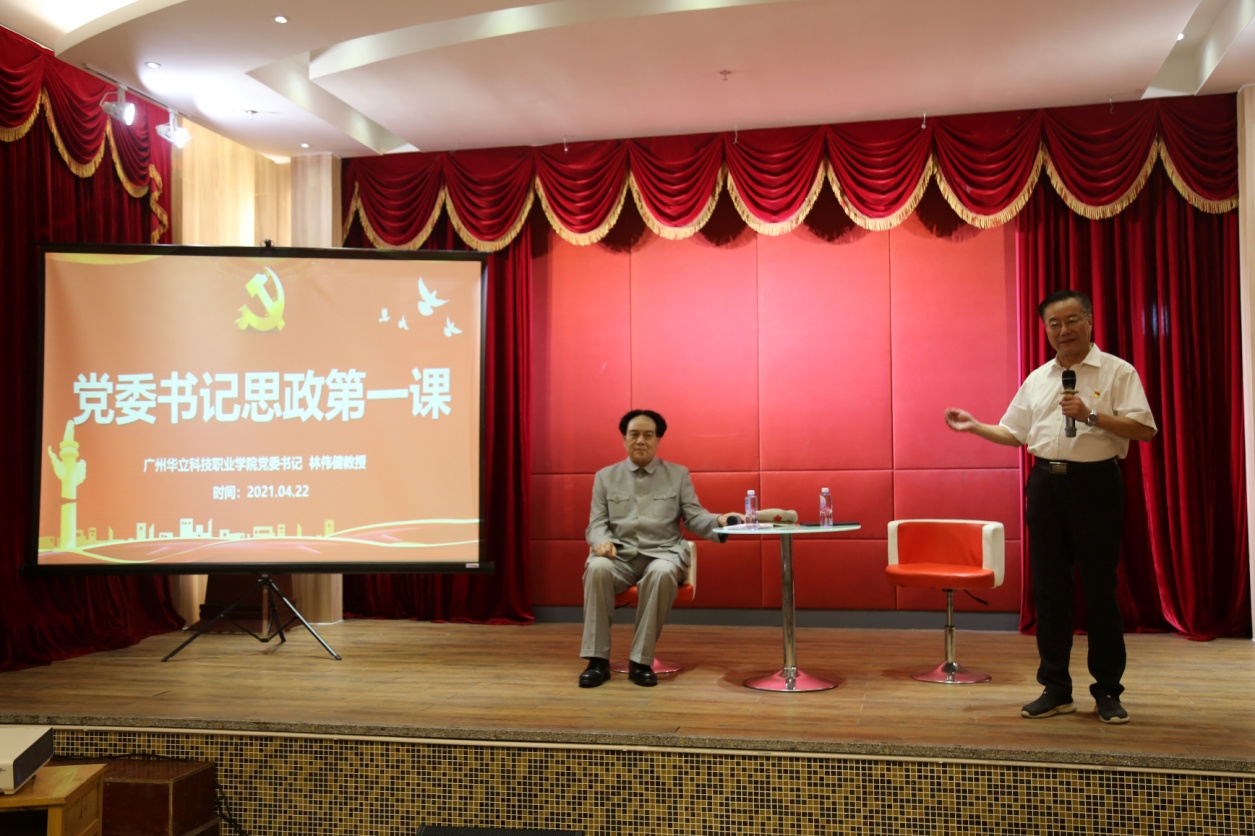 “這樣的思政課太有創(chuàng)意了,我們太喜歡了!”;“黨委書記和‘毛主席’同登臺,一起給我們講思政課,解讀毛主席著作,這種形式太有創(chuàng)意了!”;“這堂思政第一課,既讓我們受到了黨史教育,又讓我們理解了黨的宗旨意識,太給力了!”4月22日晚上,廣州華立科技職業(yè)學院云浮校區(qū)的“黨委書記思政第一課”結(jié)束后,師生們興奮之情溢于言表。