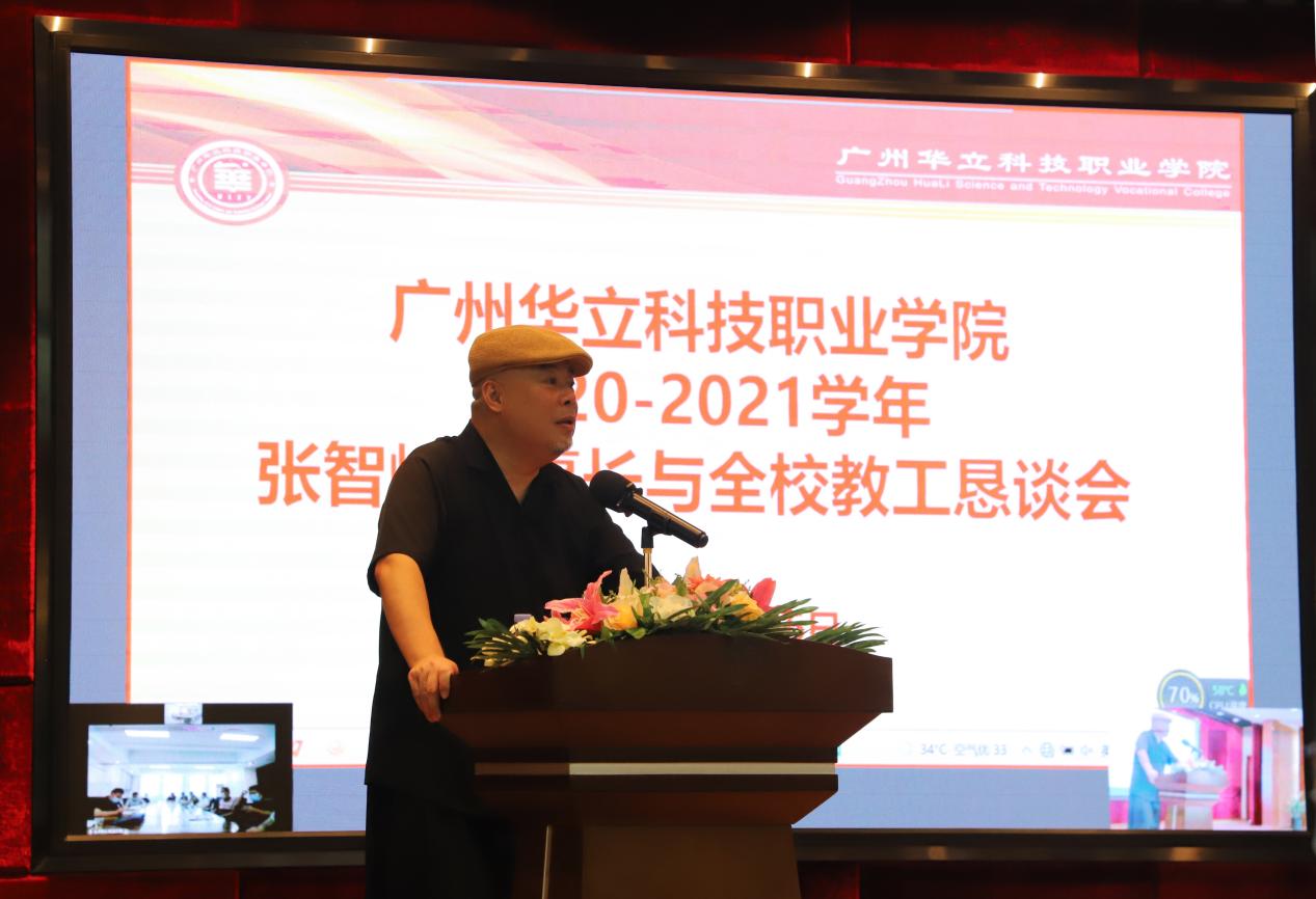 張智峰董事長深入淺出的為在座的師生“描繪”了“華立董事長”的“自我形象”,形象地剖析了在辦學(xué)過程中遇見困難時(shí)的心路歷程,希望以此及彼,為大家在各自的職業(yè)發(fā)展和人生選擇中提供動(dòng)力和機(jī)會(huì)。他期待全校教職工要做到“五愛”“五懂”,即愛崗位、愛學(xué)習(xí)、愛學(xué)生、愛教書、愛華立,懂社會(huì)、懂學(xué)生、懂服務(wù)、懂市場、懂友情,讓自己成為更優(yōu)秀的人。