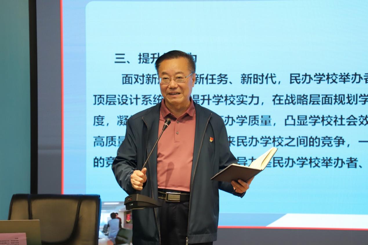 趙教授強(qiáng)調(diào),新法新政出臺(tái),我們要順應(yīng)新潮流、擁抱新時(shí)代、開創(chuàng)新局面,準(zhǔn)確把握《實(shí)施條例》的政策法律導(dǎo)向,全面加強(qiáng)黨對(duì)民辦學(xué)校的領(lǐng)導(dǎo),堅(jiān)持民辦教育的公益性,鼓勵(lì)和支持非營(yíng)利辦學(xué),轉(zhuǎn)變觀念,提高認(rèn)識(shí),提高政治站位,要提升戰(zhàn)略判斷力和領(lǐng)導(dǎo)力,提高法制意識(shí),適應(yīng)新時(shí)代的發(fā)展,著力加強(qiáng)學(xué)校內(nèi)涵建設(shè),打造特色,大力促進(jìn)我省民辦教育事業(yè)健康高質(zhì)量發(fā)展。殷切希望教師們深刻認(rèn)識(shí)到職業(yè)教育的意義,要有培養(yǎng)學(xué)生 “德、智、體、美、勞”全面發(fā)展的教育情懷,為社會(huì)發(fā)展培養(yǎng)提供堅(jiān)實(shí)的人才支撐。