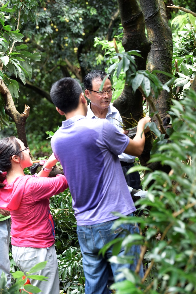 李向林教授團(tuán)隊(duì)以自然生長的果園荔枝樹為載體,利用荔枝樹枝葉遮陽的效果,進(jìn)行了荔枝樹與鐵皮石斛相容共生的現(xiàn)代農(nóng)業(yè)立體栽培技術(shù)研究,在荔枝樹上培育出了素有“藥中黃金”之稱的名貴中藥材鐵皮石斛,讓“仙草”走出大山,走進(jìn)果園,讓大學(xué)生在廣闊自然中學(xué)習(xí)知識,感受自然,陶冶身心,關(guān)愛天地。