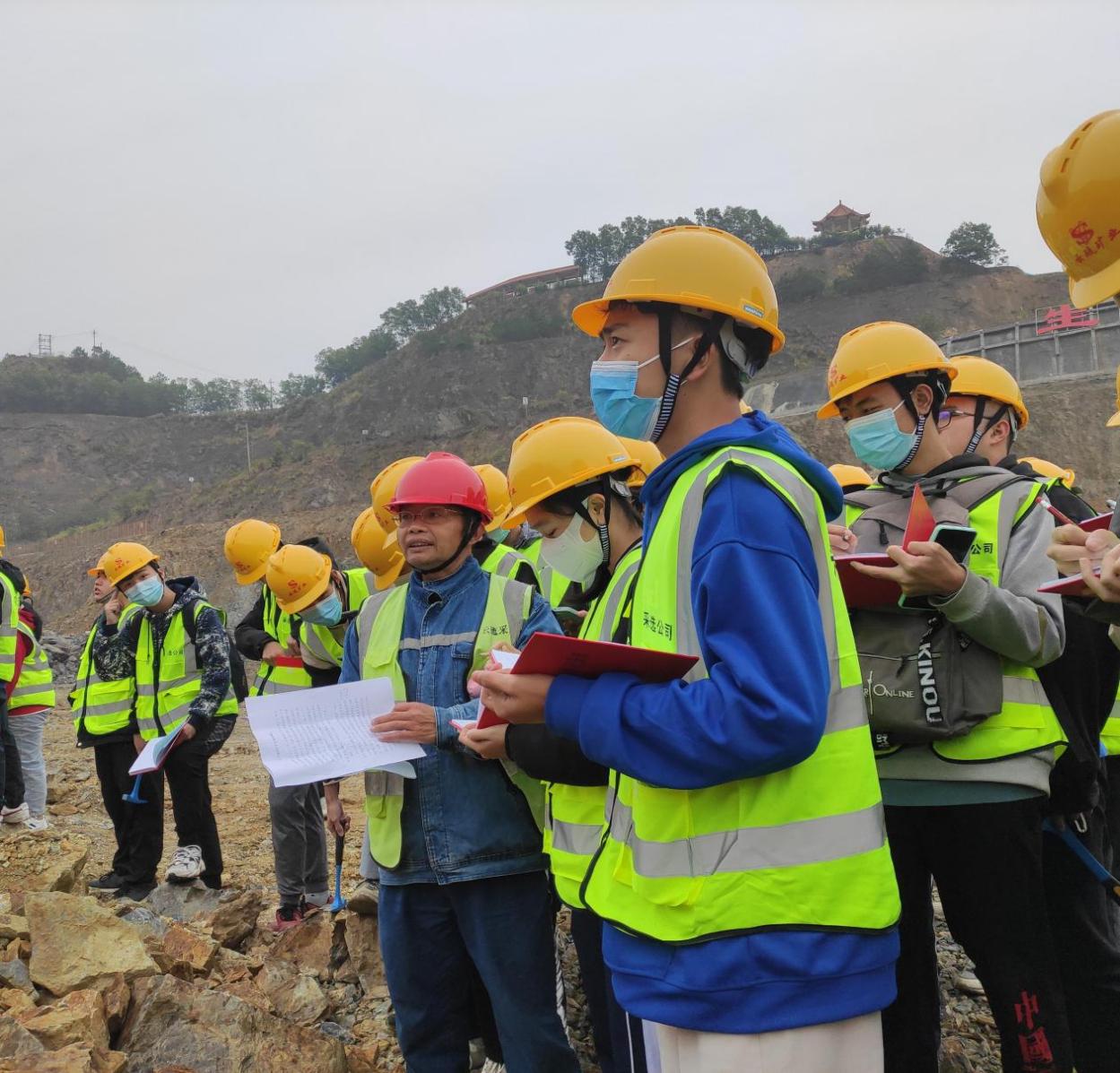 (硫鐵礦礦山彭總工程師向?qū)W生介紹礦山地質(zhì)概況)