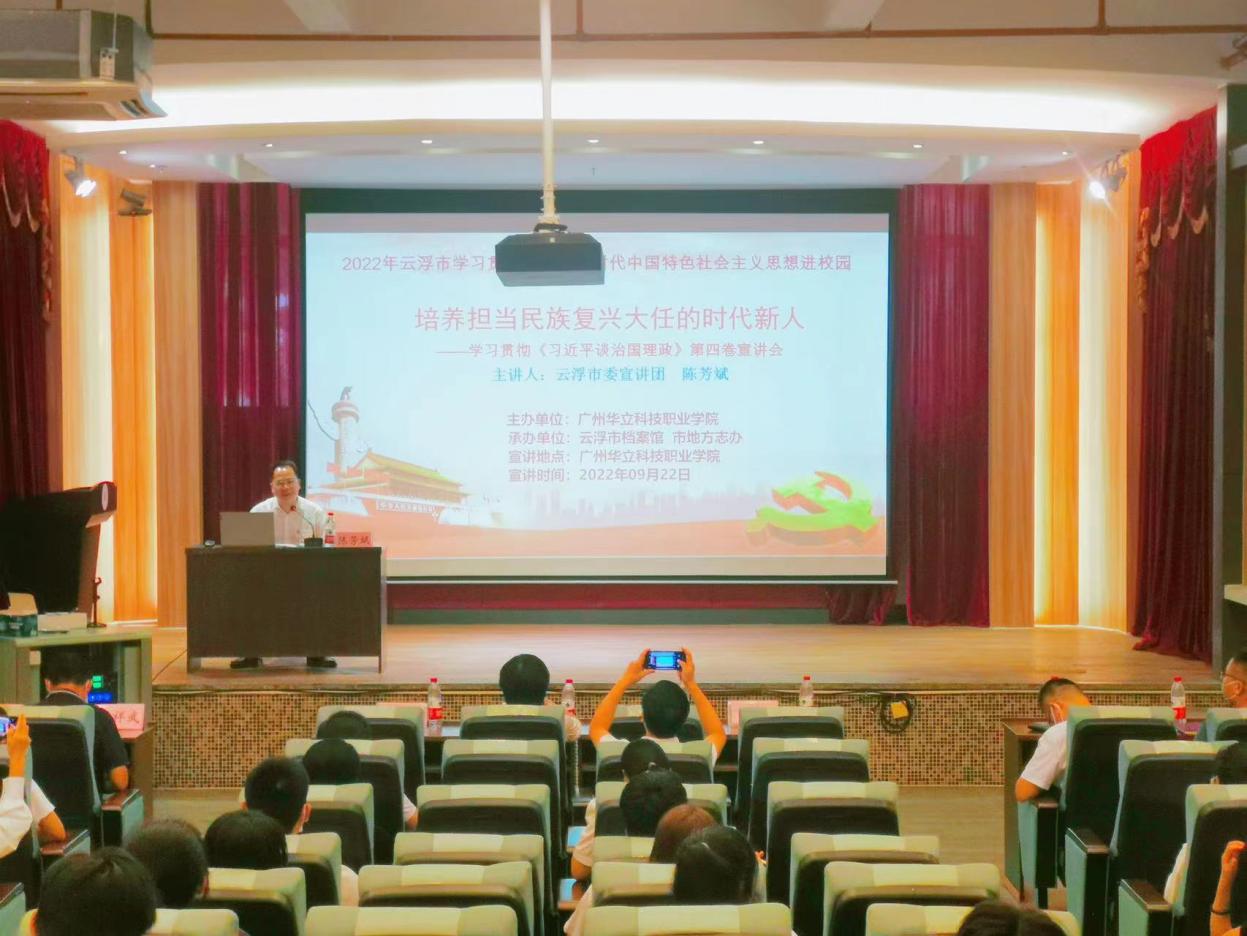 教育興則國(guó)家興,教育強(qiáng)則國(guó)家強(qiáng)。培養(yǎng)什么樣的人、如何培養(yǎng)人以及為誰(shuí)培養(yǎng)人,一直是習(xí)近平總書(shū)記強(qiáng)調(diào)的重中之重。為了推動(dòng)廣大師生進(jìn)一步增強(qiáng)學(xué)思想、悟思想、用思想的自覺(jué)性與堅(jiān)定性;不斷提高政治判斷力、政治領(lǐng)悟力、政治執(zhí)行力。9月22日,廣州華立科技職業(yè)學(xué)院云浮校區(qū)特邀云浮市檔案館館長(zhǎng)、云浮市人民政府地方志辦公室主任、云浮市委宣講團(tuán)成員陳芳斌來(lái)校開(kāi)展學(xué)習(xí)貫徹《習(xí)近平談治國(guó)理政》第四卷專(zhuān)題報(bào)告會(huì)。