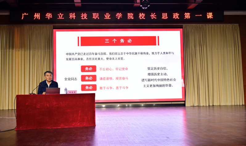 用習近平新時代中國特色社會主義思想鑄魂育人 培養(yǎng)社會主義事業(yè)建設者和接班人 ——廣州華立科技職業(yè)學院校長陳德清為學生上“思政第一課”
