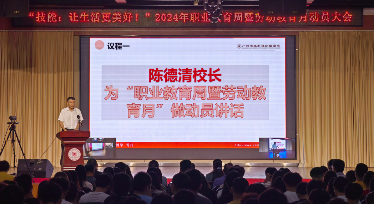 大會(huì)議程一:校長(zhǎng)陳德清為“職業(yè)教育周暨勞動(dòng)教育月”做動(dòng)員講話。