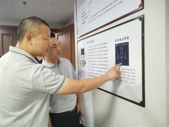 座談會(huì)結(jié)束后,學(xué)員們參觀了學(xué)校甘泉文化研究中心。研究中心執(zhí)行主任廖良初教授全面介紹了研究中心的基本架構(gòu)、團(tuán)隊(duì)成員、學(xué)術(shù)研究以及藏書情況等。在參觀過程中,學(xué)員們對(duì)湛若水的心性圖產(chǎn)生了濃厚興趣,并對(duì)研究中心的各項(xiàng)資源表示高度贊賞。