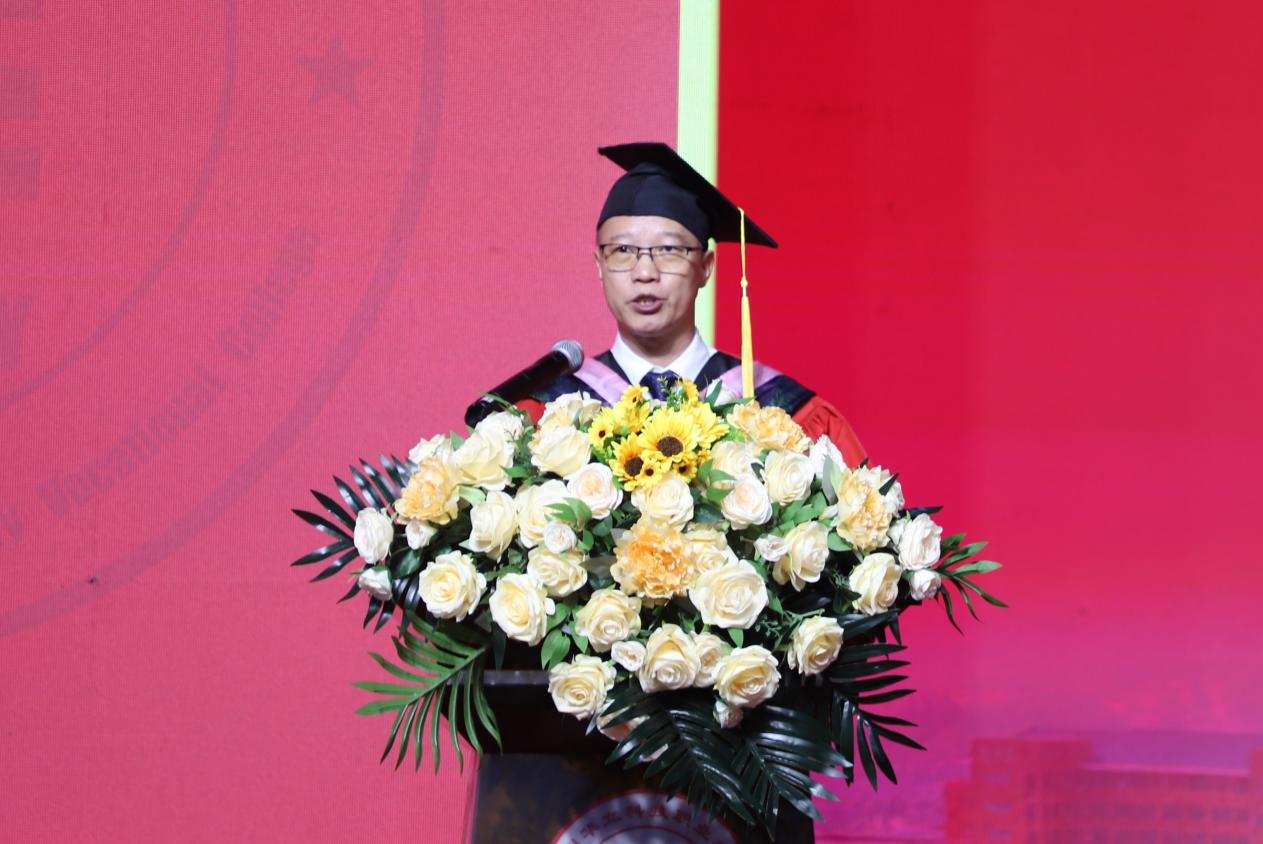 全體在校領(lǐng)導(dǎo),各二級(jí)學(xué)院及職能處室負(fù)責(zé)人、教師代表、畢業(yè)班輔導(dǎo)員、校友代表及2024屆畢業(yè)生出席了畢業(yè)典禮。典禮由常務(wù)副校長馬俊主持。