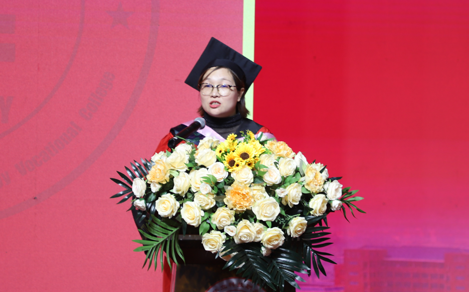 典禮上,易健民校長用情真意切的致辭表達(dá)了對(duì)2024屆畢業(yè)生的熱烈祝賀和深情祝福。在即將離開校園,開啟嶄新的人生之旅之際,易校長對(duì)畢業(yè)生提出了三點(diǎn)希望,一是要明確新的航向,實(shí)現(xiàn)自我價(jià)值。踏進(jìn)社會(huì)后,站在新的起點(diǎn),要主動(dòng)將個(gè)人理想融入國家發(fā)展藍(lán)圖,同頻共振,同聲相應(yīng),爭做“有理想、敢擔(dān)當(dāng)、能吃苦、肯奮斗”的時(shí)代好青年,實(shí)現(xiàn)自我價(jià)值。二是要繼續(xù)學(xué)習(xí),堅(jiān)持終身學(xué)習(xí)。學(xué)習(xí)專業(yè)技術(shù)知識(shí),打牢理論基礎(chǔ);學(xué)習(xí)為人處世,正確面對(duì)順境與困難,妥善處理人際關(guān)系;學(xué)習(xí)傳統(tǒng)文化,提高人文素養(yǎng),豐富精神世界。三是要勇于實(shí)踐,繼續(xù)提升技能。在今后的職業(yè)生涯中,要立志做新時(shí)代的大國工匠、勞動(dòng)模范,立足本職、愛崗敬業(yè)、勇于實(shí)踐、勤學(xué)苦練,虛心向能工巧匠學(xué)習(xí),掌握技術(shù)要領(lǐng),傳承“秘籍”“竅門”。期待畢業(yè)生們勇敢的放飛青春的夢(mèng)想,在新征途上展翅高飛。