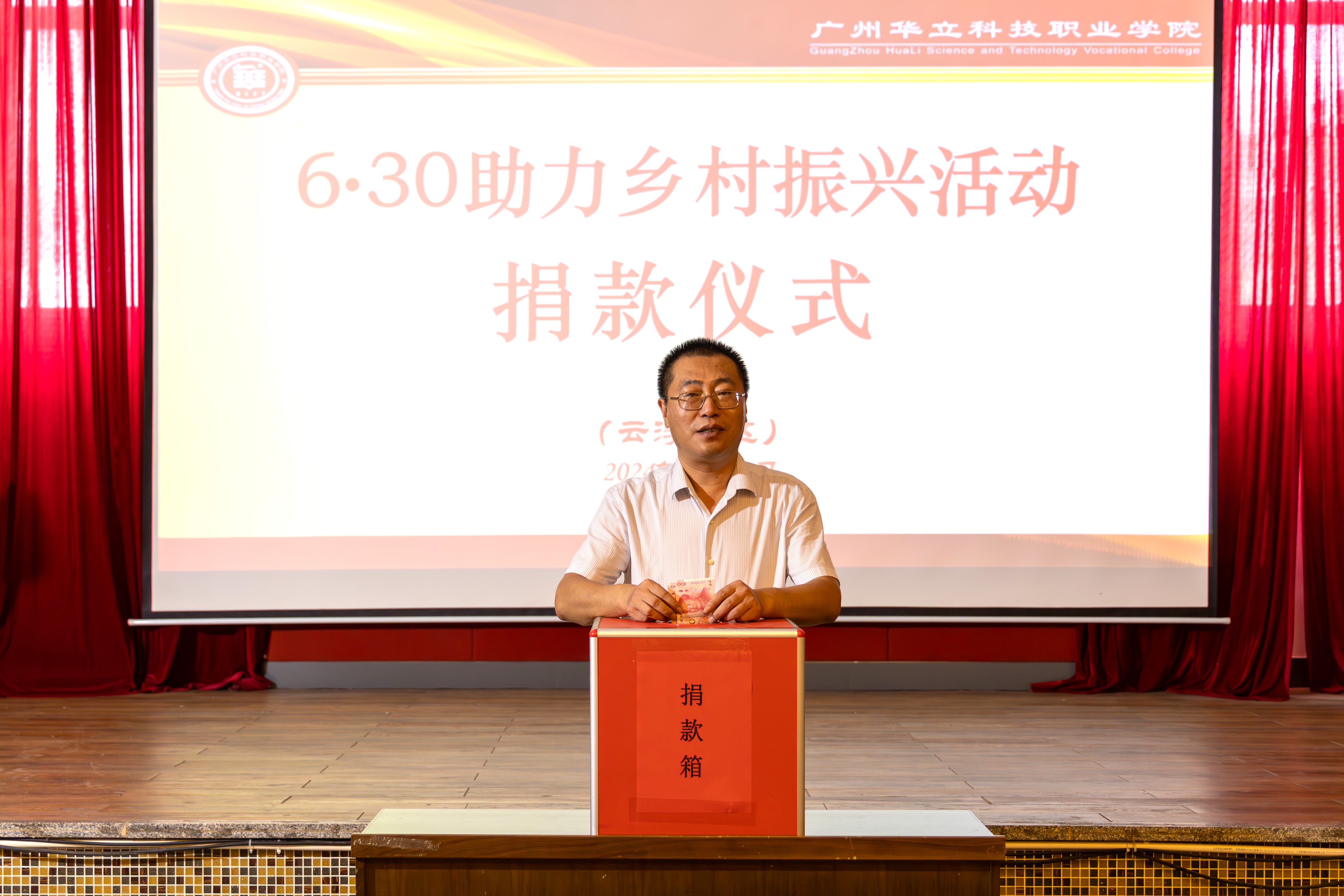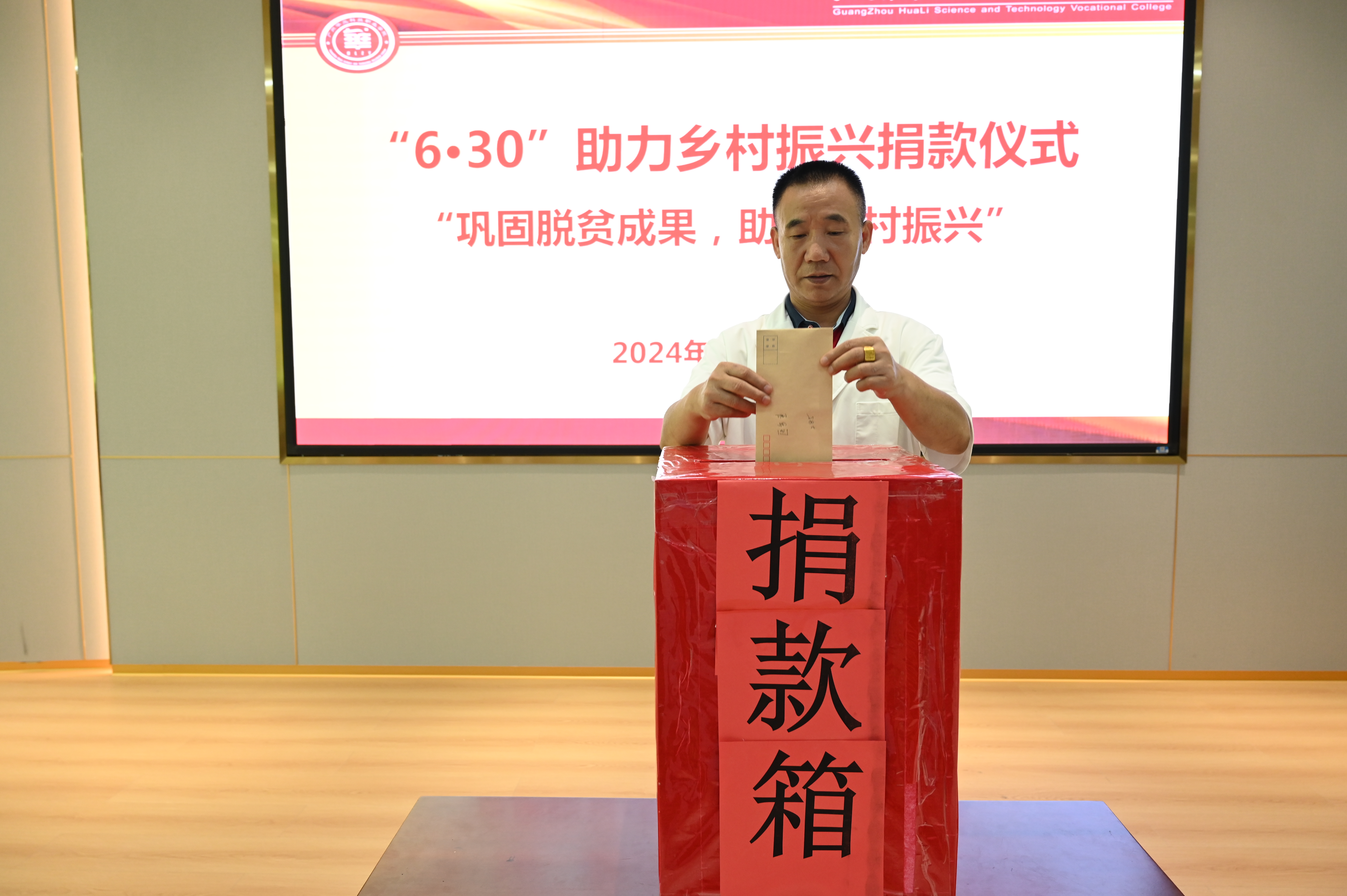 為進一步弘揚中華民族扶貧濟困、樂善好施的傳統(tǒng)美德,根據(jù)《廣東省2024年“6·30”助力鄉(xiāng)村振興活動工作方案》文件精神,6月28日上午,學(xué)校工會舉行了“6·30”助力鄉(xiāng)村振興愛心捐款活動。學(xué)校領(lǐng)導(dǎo)班子成員、教師代表、學(xué)生代表參加了捐款儀式。捐款儀式由工會主席、常務(wù)副校長馬俊主持。