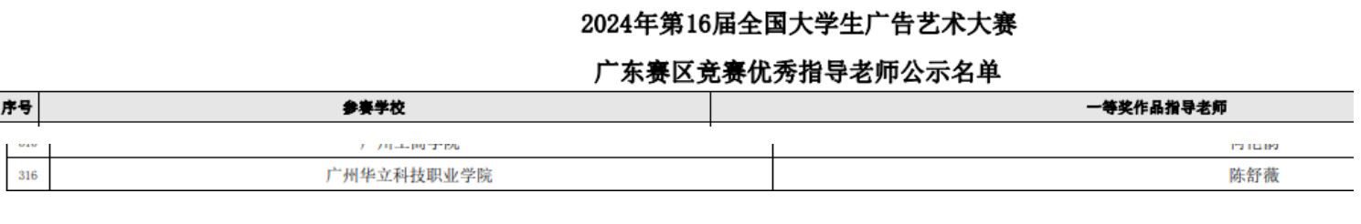 近日,由廣東省教育廳主辦,深圳大學(xué)承辦的2024年第16屆全國(guó)大學(xué)生廣告藝術(shù)大賽廣東賽區(qū)競(jìng)賽獲獎(jiǎng)結(jié)果已公示。廣州華立科技職業(yè)學(xué)院藝術(shù)與傳媒學(xué)院選送的作品共獲得一等獎(jiǎng)1項(xiàng)、二等獎(jiǎng)1項(xiàng)、三等獎(jiǎng)1項(xiàng)。同時(shí),陳舒薇老師獲得“優(yōu)秀指導(dǎo)老師獎(jiǎng)”。本次所有獲獎(jiǎng)作品將報(bào)送北京,代表廣東賽區(qū)參加全國(guó)總決賽。