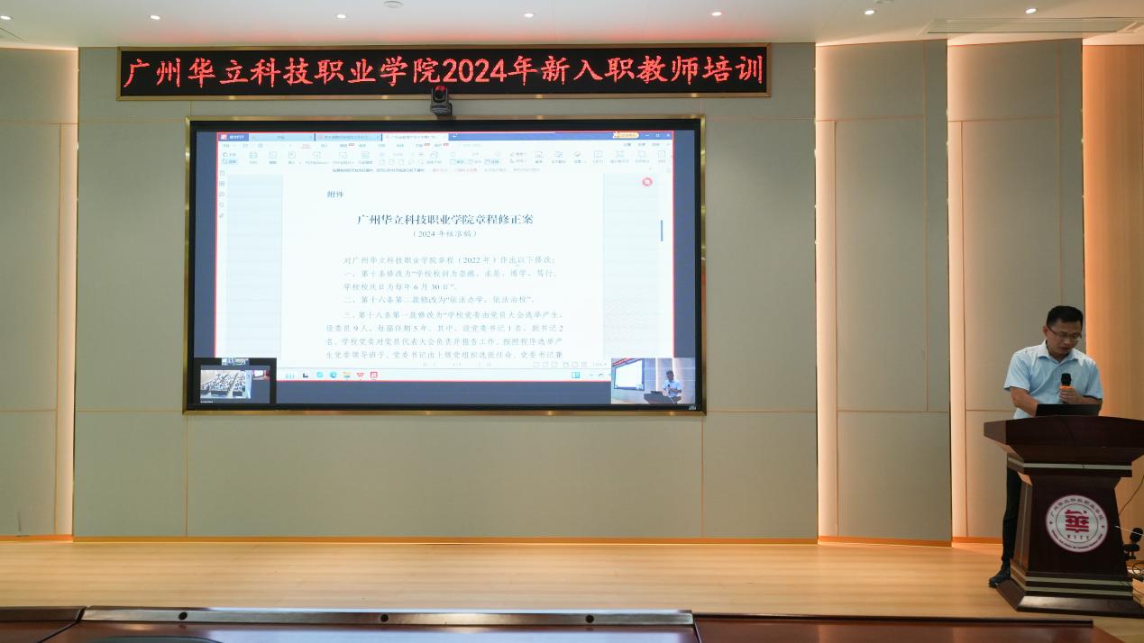 接著,學(xué)校辦公室主任李鵬對學(xué)校的基本情況作了全面簡介,包括學(xué)校的發(fā)展簡史、職能部門設(shè)置、二級學(xué)院情況、學(xué)校章程等,重點介紹了學(xué)校的辦學(xué)理念、發(fā)展目標(biāo)和學(xué)習(xí)了學(xué)校章程,希望新入職教師了解華立文化,盡快融入華立大家庭。