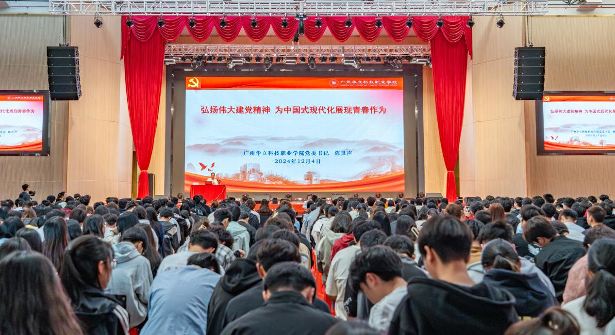 12月4日,學(xué)校黨委書(shū)記陳良聲在云浮校區(qū)文體樓報(bào)告廳以“弘揚(yáng)偉大建黨精神,為中國(guó)式現(xiàn)代化展現(xiàn)青春作為”為題,為云浮校區(qū)師生作專(zhuān)題報(bào)告。云浮校區(qū)黨委、各二級(jí)學(xué)院黨支部負(fù)責(zé)人、馬克思主義學(xué)院思政教師及600多名學(xué)生參加。學(xué)校黨委副書(shū)記、副校長(zhǎng)高堯來(lái)同志主持報(bào)告會(huì)。