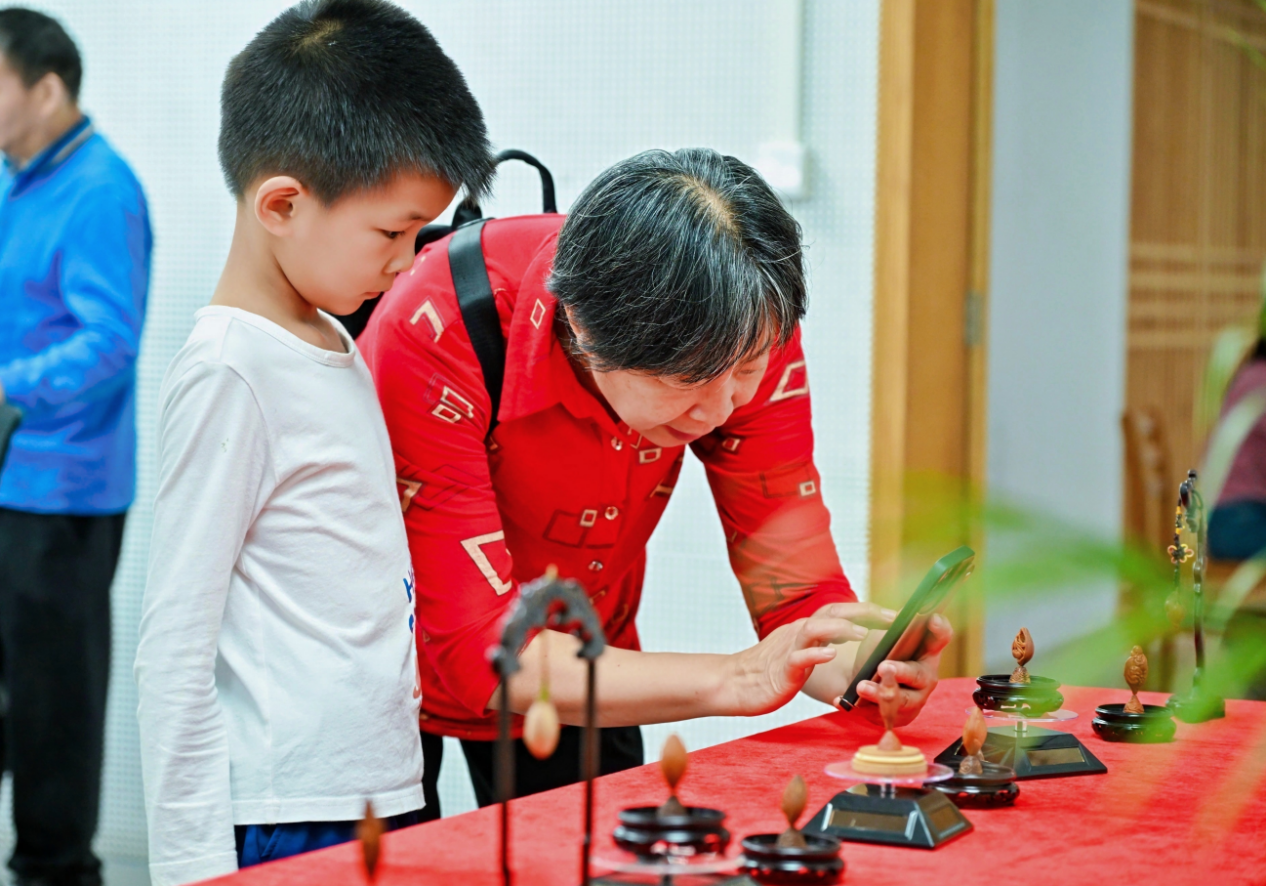 欖雕,作為嶺南文化的重要組成部分,歷史悠久,源遠(yuǎn)流長(zhǎng)。它以烏欖核為原料,經(jīng)過(guò)巧妙的構(gòu)思和精湛的雕刻技藝,創(chuàng)作出形態(tài)各異、栩栩如生的藝術(shù)品。本次活動(dòng)周漢軍師生團(tuán)隊(duì)現(xiàn)場(chǎng)講學(xué),傳承欖雕技藝和中華優(yōu)秀傳統(tǒng)文化。