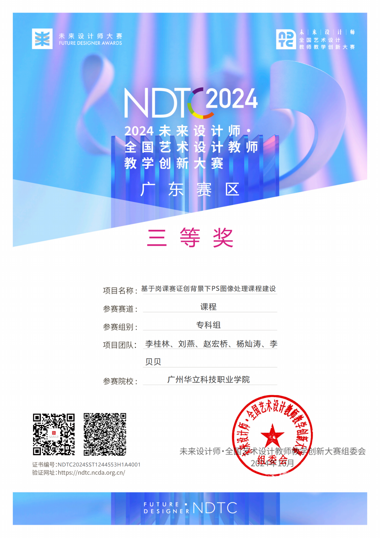 近日,2024未來設計師·全國藝術設計教師教學創(chuàng)新大賽(簡稱“教創(chuàng)賽”)結果公布,我校教師團隊表現(xiàn)出色。其中,課程賽道榮獲三等獎3項,案例賽道榮獲三等獎1項,學校榮獲優(yōu)秀組織獎,此份榮譽充分展示了學校在藝術設計教育領域的創(chuàng)新實力和優(yōu)秀成果。