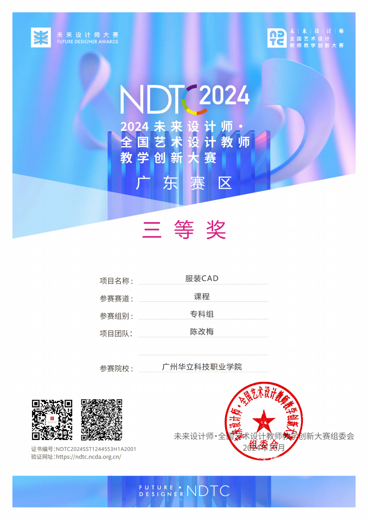 其中,陳改梅老師憑借《服裝CAD》課程榮獲大賽三等獎。該課程以其獨特的教學設計、豐富的教學內容和創(chuàng)新的教學方法,獲得了評審專家的高度評價;李桂林老師及團隊憑借課程《基于崗課賽證創(chuàng)背景下PS圖像處理課程建設》榮獲大賽三等獎,課程巧妙地將理論與實踐相結合,通過引導學生參與實際項目,培養(yǎng)了學生的創(chuàng)新思維和實際操作能力;馬英超老師及團隊憑借課程《美育實踐--欖雕技藝》榮獲大賽三等獎,課程采用了項目式學習,極大地激發(fā)了學生的學習興趣和主動性。