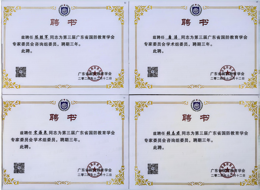 第三屆廣東省國(guó)防教育學(xué)會(huì)專家委員會(huì)成員聘書