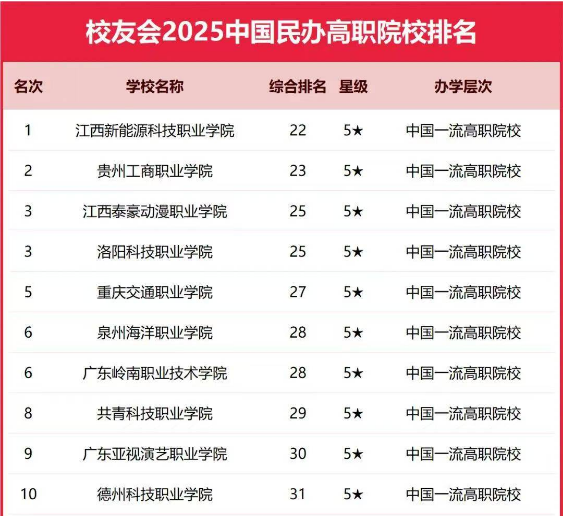 2025年1月6日,《2025校友會中國大學(xué)排名:高考志愿填報指南》正式發(fā)布,我校在中國民辦高職院校排名中位列第35名;在中國高職院校(I類)排名中躍升至第85名,較上一年度上升了15個位次;在廣東省同類高職院校(I類)中排名第一。