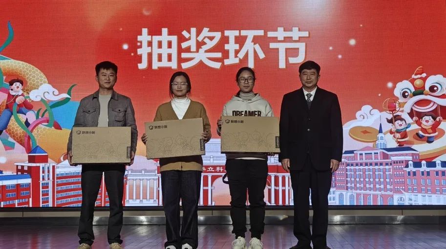 當(dāng)抽獎箱出現(xiàn)在舞臺時,瞬間吸引了全體教職工的目光。校領(lǐng)導(dǎo)與嘉賓們逐一從抽獎箱中抽取幸運兒的名字,每一次名單的揭曉都伴隨著獲獎?wù)咭种撇蛔〉臍g呼與周圍人羨慕的掌聲。經(jīng)過充滿樂趣的六輪抽獎,最終塵埃落定:特等獎2名,一等獎3名,二等獎8名、三等獎10名、四等獎25名、五等獎70名。每一份獎品都承載著學(xué)校對教職工辛勤付出的認可與感激,整個會場沉浸在一片歡聲笑語與滿滿的幸福感之中。