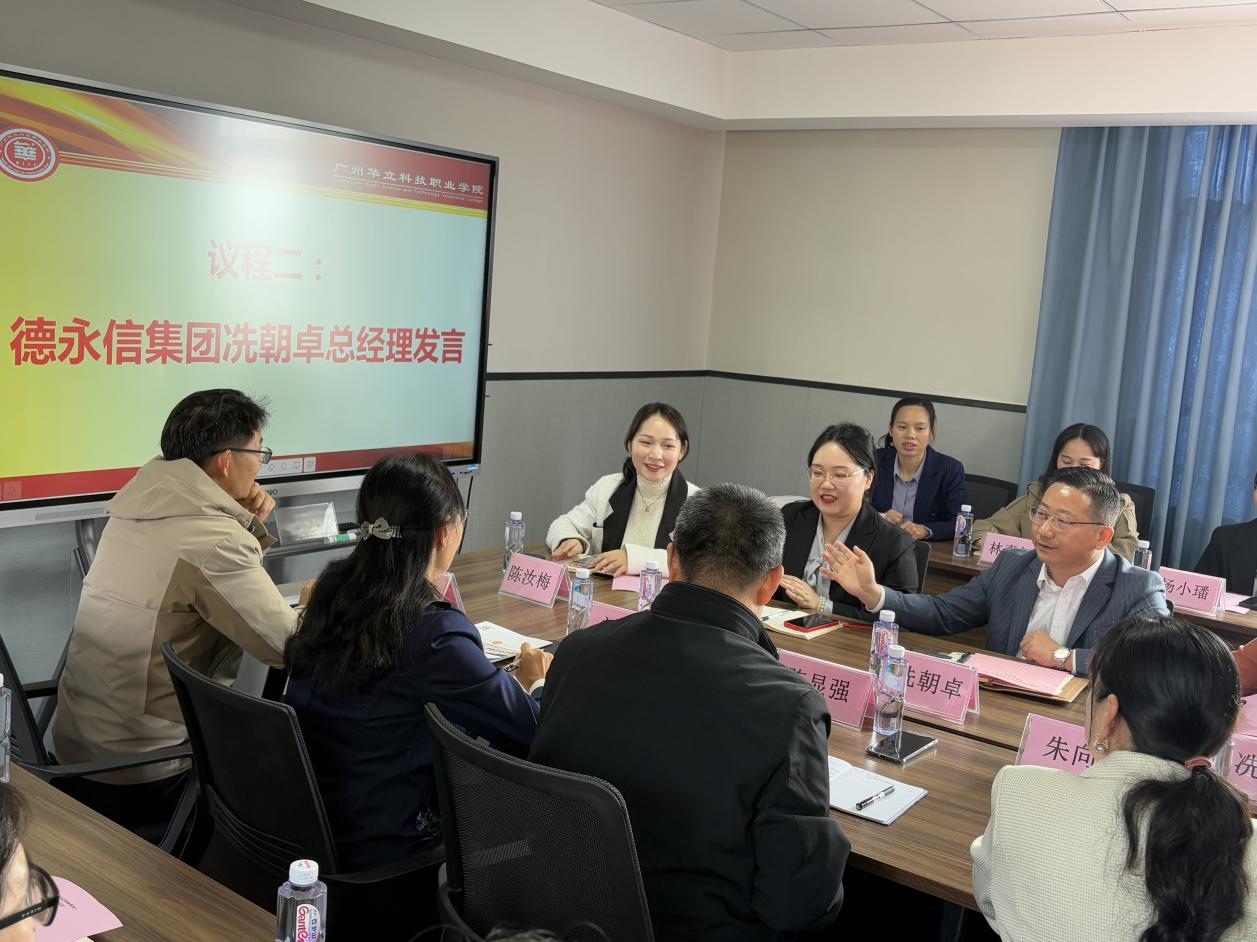 2025年2月27日,深圳市德永信財(cái)稅集團(tuán)有限公司總經(jīng)理冼朝卓先生率領(lǐng)集團(tuán)下各子公司高管們一行蒞臨廣州華立科技職業(yè)學(xué)院經(jīng)濟(jì)管理學(xué)院參加“共育匠才 ‘職’ 通未來” 產(chǎn)教融合洽談會(huì)。學(xué)校副校長陳顯強(qiáng)教授親臨會(huì)場,陪同參會(huì)的還有教務(wù)處處長王澤秀及產(chǎn)教融合辦韋建林主任。