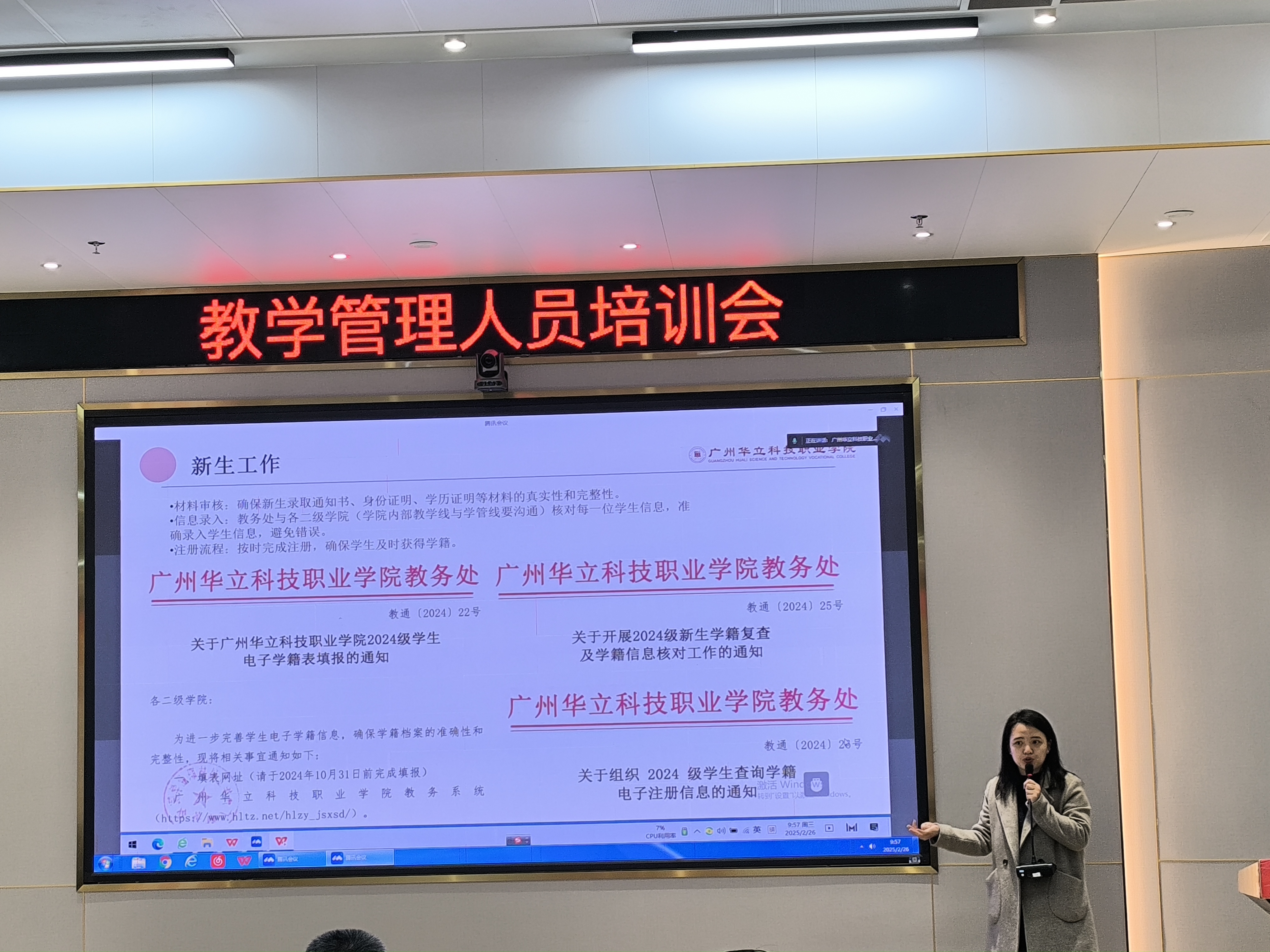 為進(jìn)一步加強(qiáng)教學(xué)管理隊伍建設(shè)、提高教學(xué)管理人員的政策水平和業(yè)務(wù)水平,2025年2月26日,教務(wù)處組織廣州、云浮兩校區(qū)同步召開教學(xué)管理人員業(yè)務(wù)培訓(xùn)會。會議由教務(wù)處副處長曾英姿主持,兩校區(qū)教學(xué)管理人員約100余人參加培訓(xùn)會。