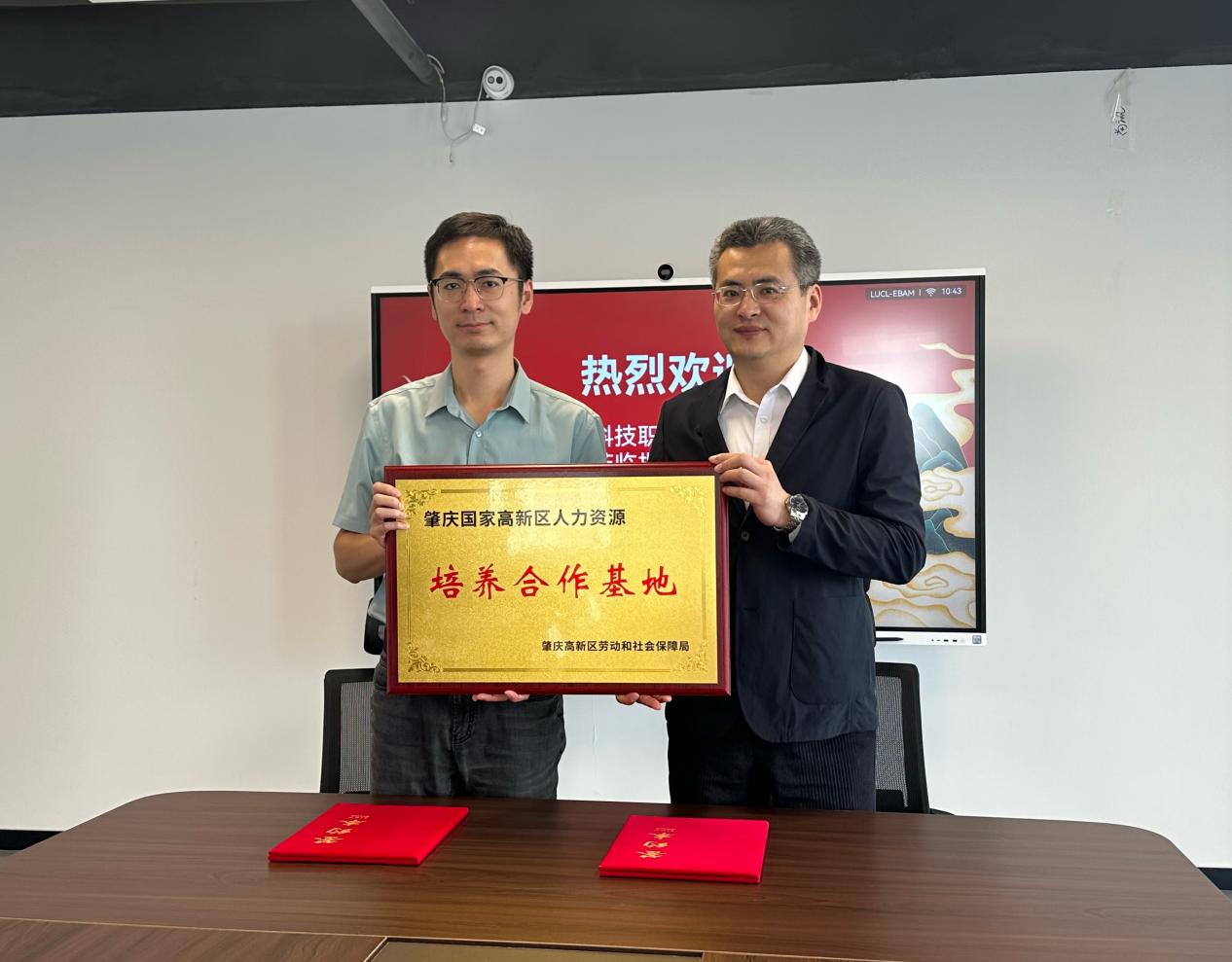 在校政企合作交流會(huì)上,肇慶高新區(qū)勞動(dòng)社保局副局長(zhǎng)柴子龍介紹了肇慶高新區(qū)產(chǎn)業(yè)布局及人力資源需求情況,張校助介紹了我校辦學(xué)定位、專業(yè)設(shè)置以及2025年學(xué)生就業(yè)和實(shí)習(xí)工作情況。經(jīng)過深入交流和探討,雙方就開展人力資源供需對(duì)接、訂單式人才培養(yǎng)等事宜簽訂了合作框架協(xié)議,肇慶高新區(qū)勞動(dòng)社保局授予我校“肇慶國(guó)家高新區(qū)人力資源培養(yǎng)合作基地”牌匾,為政校企未來的深度合作奠定了基礎(chǔ)。